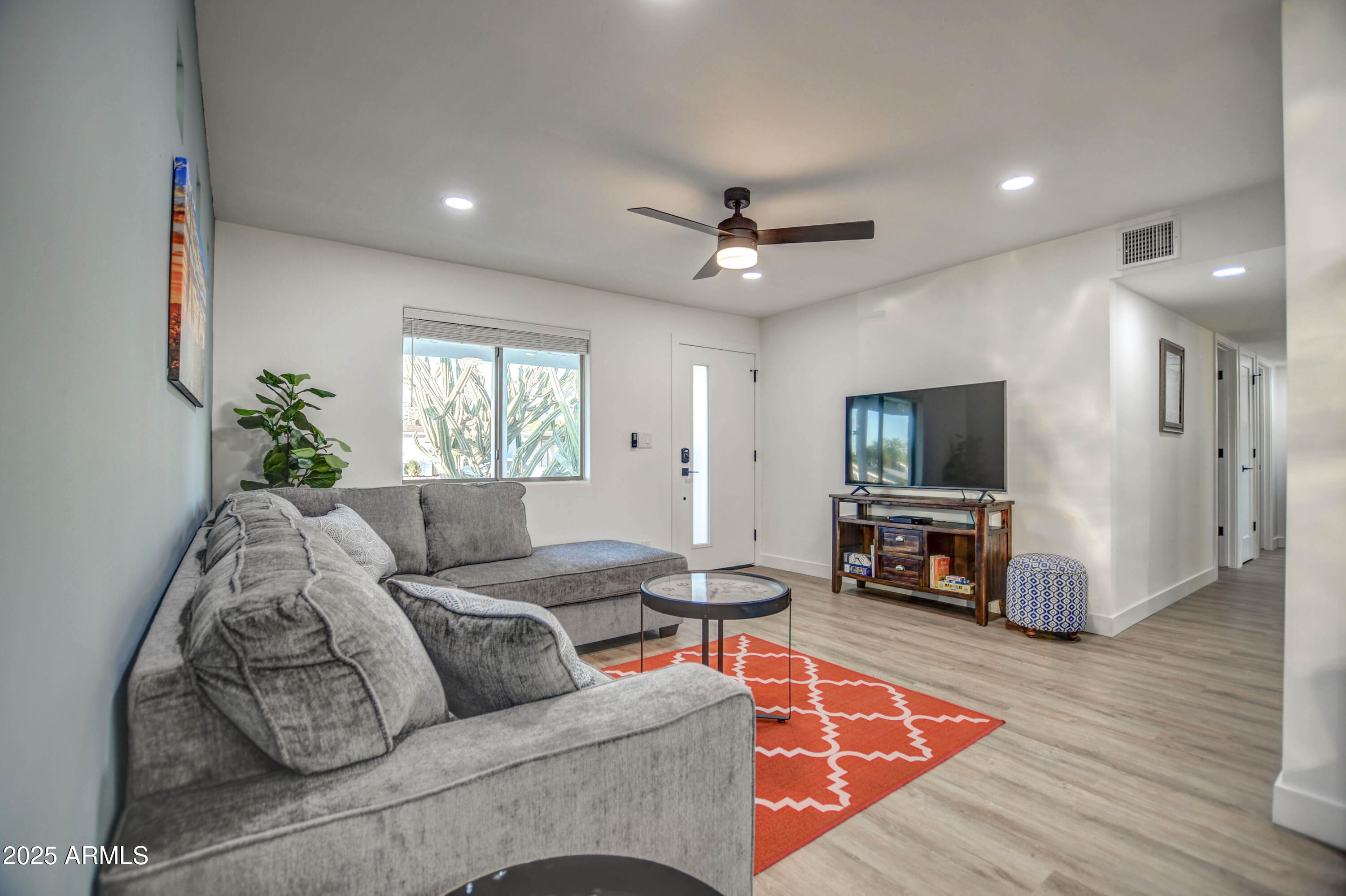 Every detail has been thoughtfully crafted in this gorgeous Scottsdale remodel. This 3-bedroom (with an oversized master) and 2-bathroom home has been enhanced with modern upgrades throughout. Enjoy the benefits of luxury vinyl plank flooring, shaker doors, new hardware, baseboards, ceiling fans, air vents, and registers. Both the interior and exterior have been freshly painted, and a Nest thermostat ensures ultimate control of the climate. Major systems have also been recently updated, including a new HVAC (10/2023), new water heater (2/2024), new roof (2/2025), and newer appliances for peace of mind and efficiency. Enclosed laundry area recently added. The backyard is perfect for bbq's as there is a covered seating area. Come see these beautiful upgrades for yourself! The gourmet kitchen boasts bright Euro White cabinets, complemented by brand-new stainless steel appliances, while both bathrooms have been completely transformed. Additional updates include new toilets, stylish light fixtures, a new sprinkler system, an RV gate, and a clean, low-maintenance yardperfect for relaxing or entertaining.