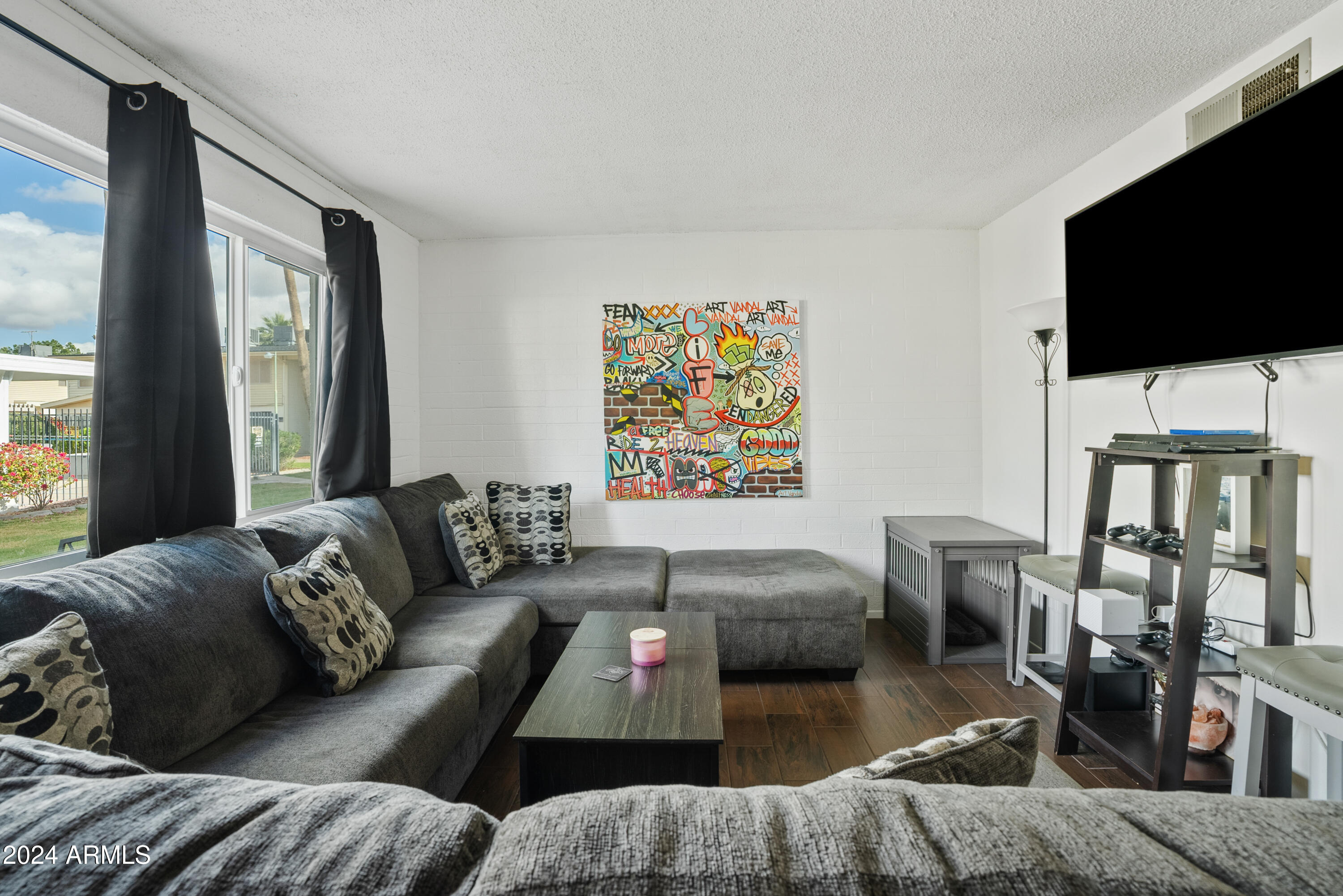 Welcome to Scottsdale East, where style meets convenience in this 3-bed, 2-bath townhome! Step into mid-century charm with an open living room, family room, and a chic kitchen featuring hard-surface counters, warm brown cabinetry, and a breakfast bar. The owner just upgraded the upstairs with sleek hard flooring, adding a fresh touch to the three spacious bedrooms. With a downstairs bath for guests and three spacious bedrooms upstairs, there's room for everyone. Enjoy your private patio with blue skies and towering palms as your backdrop. Monthly fee? Just $436 covers taxes, insurance, water, and key repairs--yes, even AC! Plus, you get lifetime membership perks with four pools, sports courts, and lush green spaces. Cash-only co-op means no rentals, no deeds, just easy, breezy ownership Welcome to the highly sought-after Scottsdale East! This charming 3-bed, 2-bath townhome is the epitome of style and comfort. Step inside to discover mid-century modern touches, an inviting living and family room, and a chic kitchen with hard-surface counters, warm brown cabinetry, and a convenient breakfast bar for casual dining. Just across from one of four sparkling community pools, this home also offers a full downstairs bath for easy guest accommodation. Upstairs, find three spacious bedrooms, a large hallway bath, and plenty of storage for all your essentials. Soak in the Arizona sun on your private patio, surrounded by blue skies and swaying palms. With a co-op community rich in amenities, your ideal lifestyle awaits in Scottsdale East!
