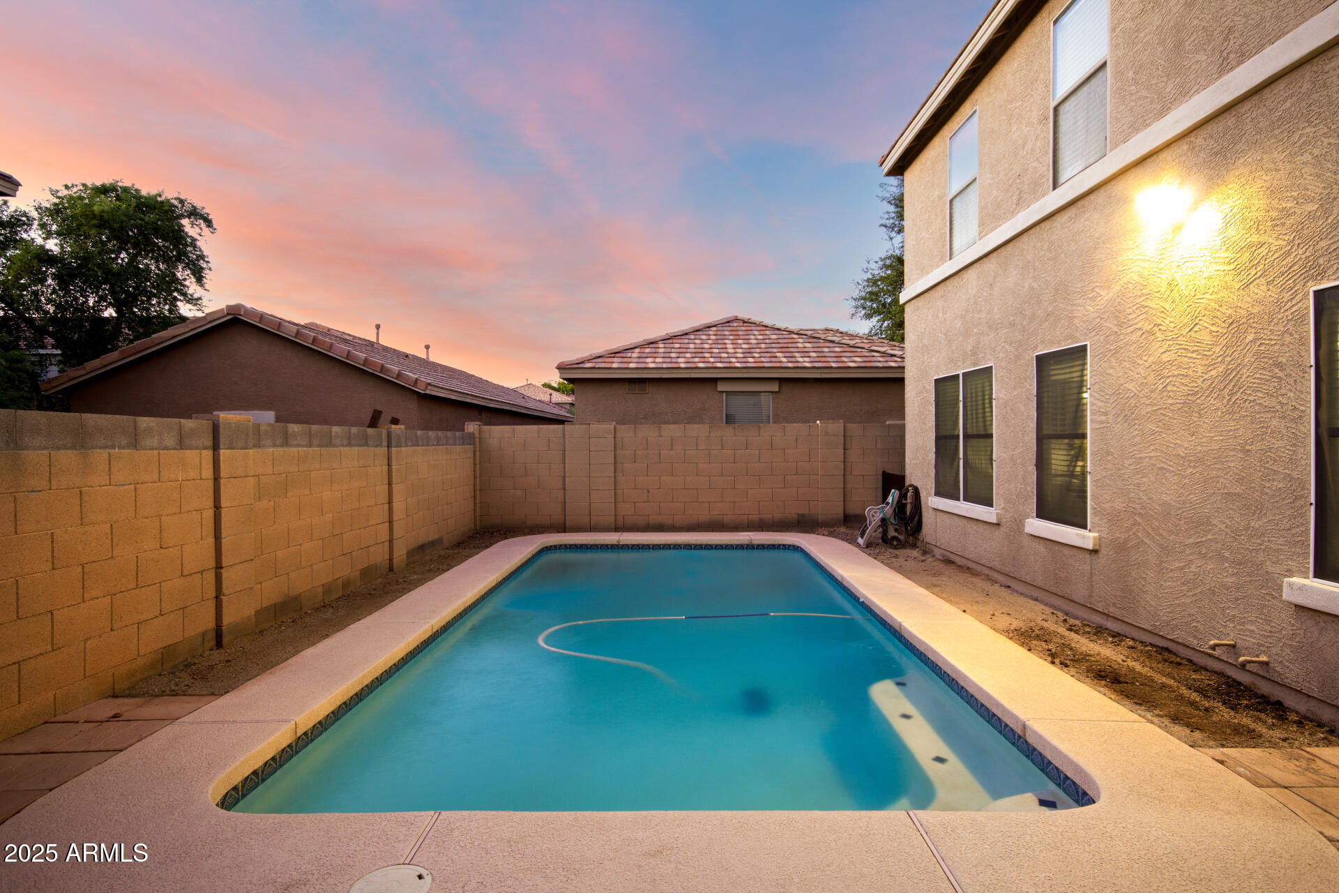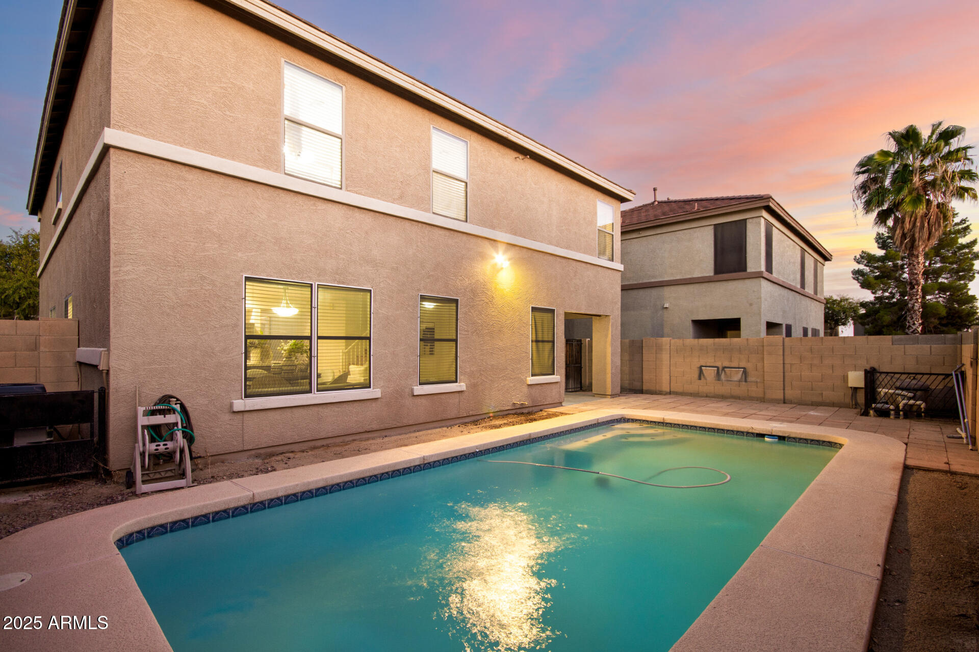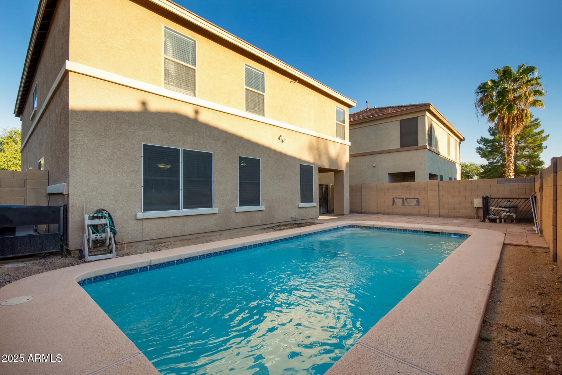 Beautifully updated 4-bedroom, 3-bath home with 2,370 sq ft and a sparkling pool--the only 4-bed pool home under $450K in the zip code! Freshly painted in neutral tones with brand-new upstairs flooring and staircase, plus refreshed bathrooms with white cabinetry. The kitchen boasts modern stainless steel appliances, quartz countertops, and ample cabinet space. Spacious living areas flow seamlessly for entertaining, while the private backyard offers a pool and patio retreat. Conveniently located near Boulder Creek Elementary and Desert Ridge High School. Move-in ready with style, comfort, and value all in one