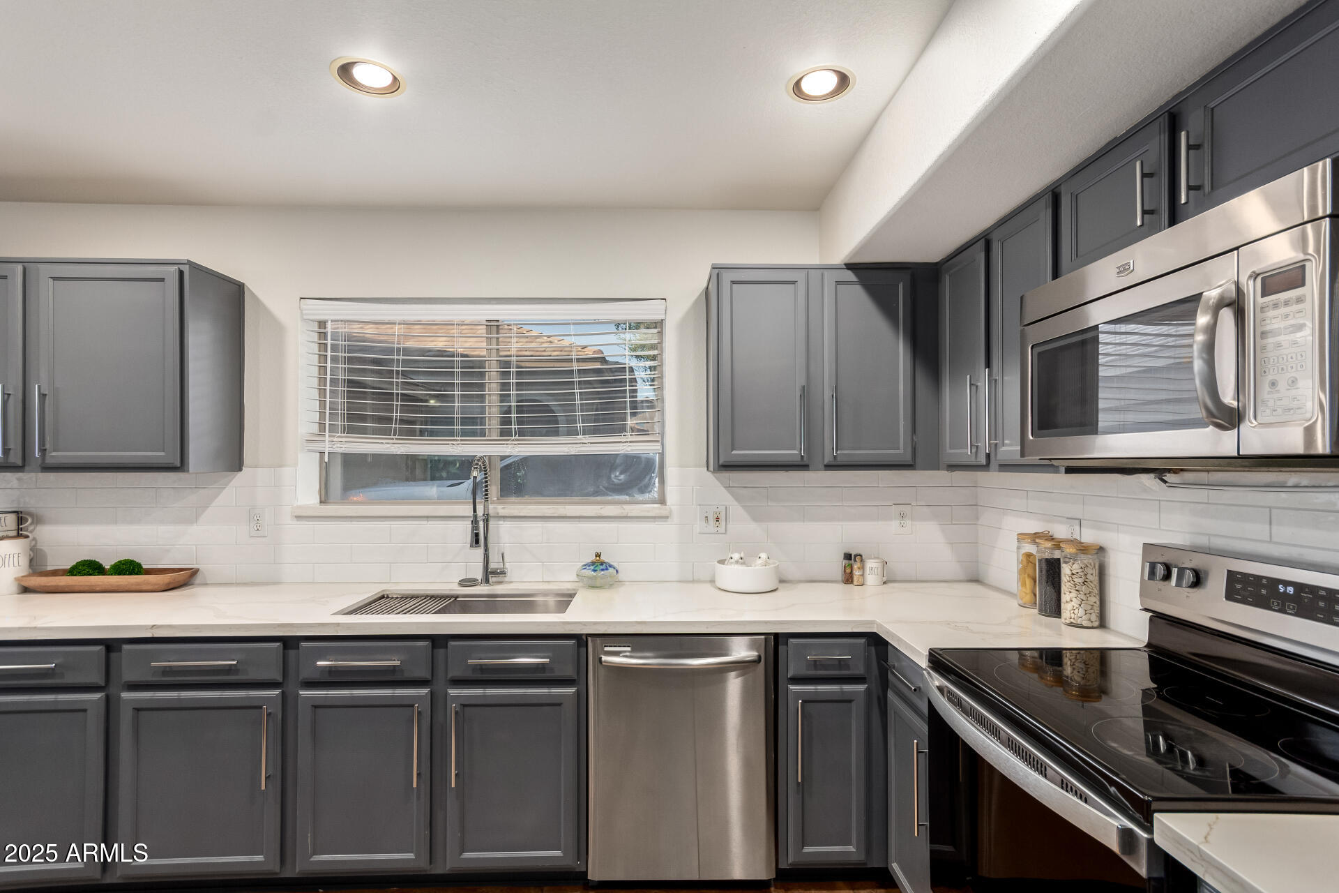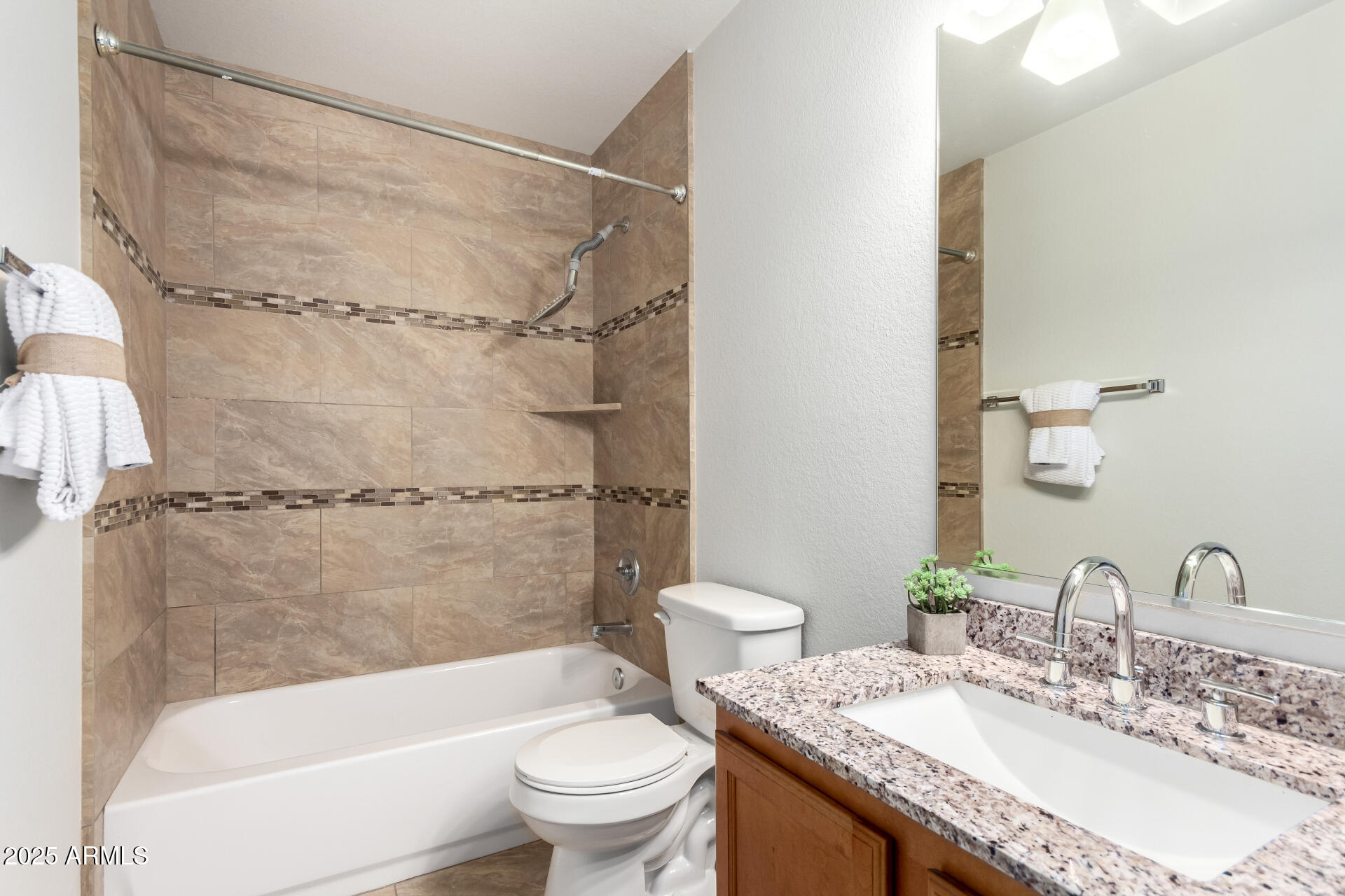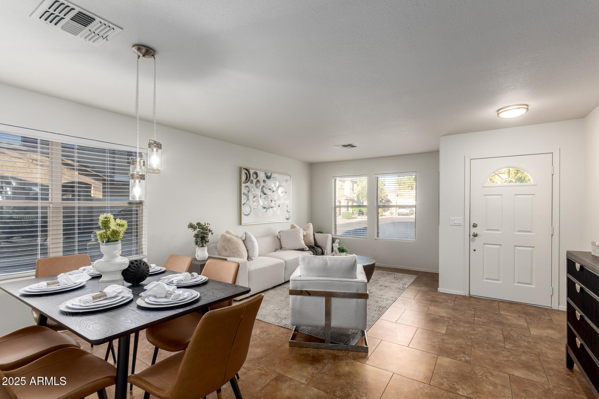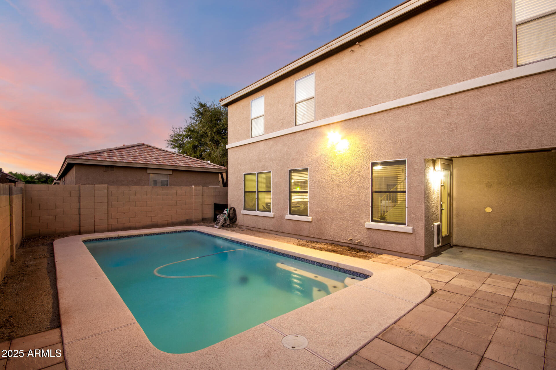 Beautifully updated 4-bedroom, 3-bath home with 2,370 sq ft and a sparkling pool--the only 4-bed pool home under $450K in the zip code! Freshly painted in neutral tones with brand-new upstairs flooring and staircase, plus refreshed bathrooms with white cabinetry. The kitchen boasts modern stainless steel appliances, quartz countertops, and ample cabinet space. Spacious living areas flow seamlessly for entertaining, while the private backyard offers a pool and patio retreat. Conveniently located near Boulder Creek Elementary and Desert Ridge High School. Move-in ready with style, comfort, and value all in one