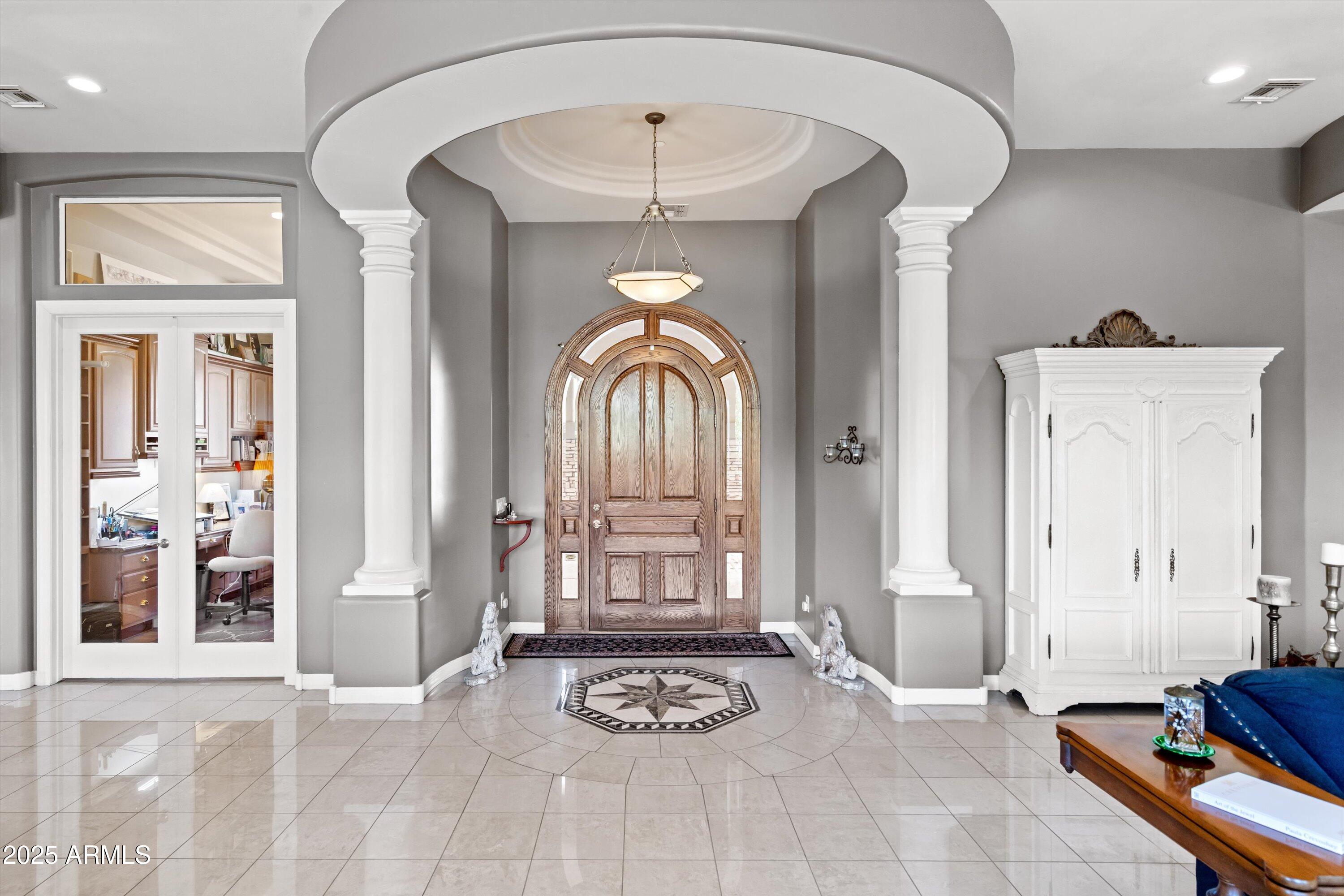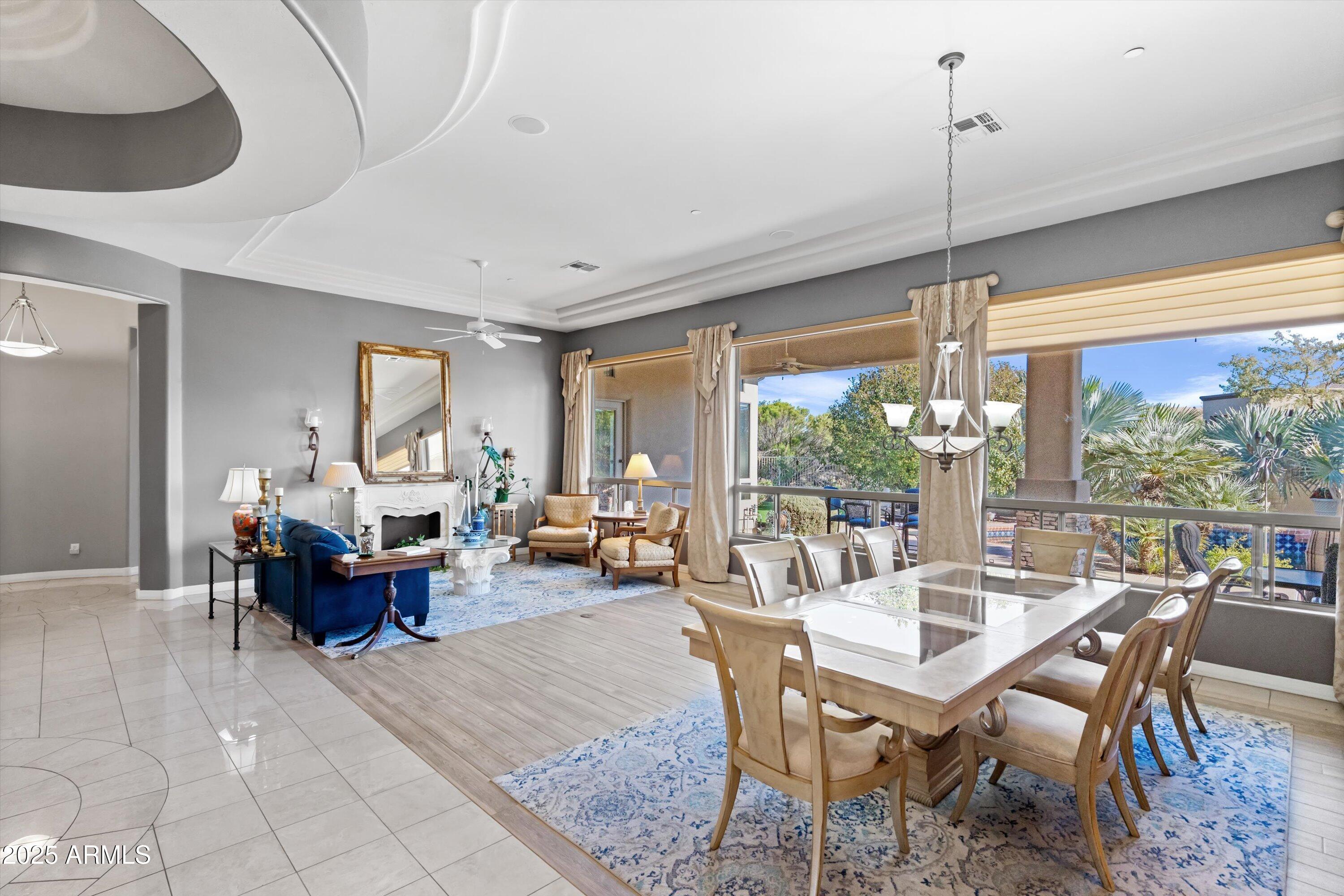 Spectacular Home in Boulder Ridge! This beautiful home offers incredible mountain views, built-in speakers throughout, and luxury finishes inside and out. Featuring a circular driveway, desert landscaping, and a welcoming front patio with fountain, the curb appeal is just the beginning.