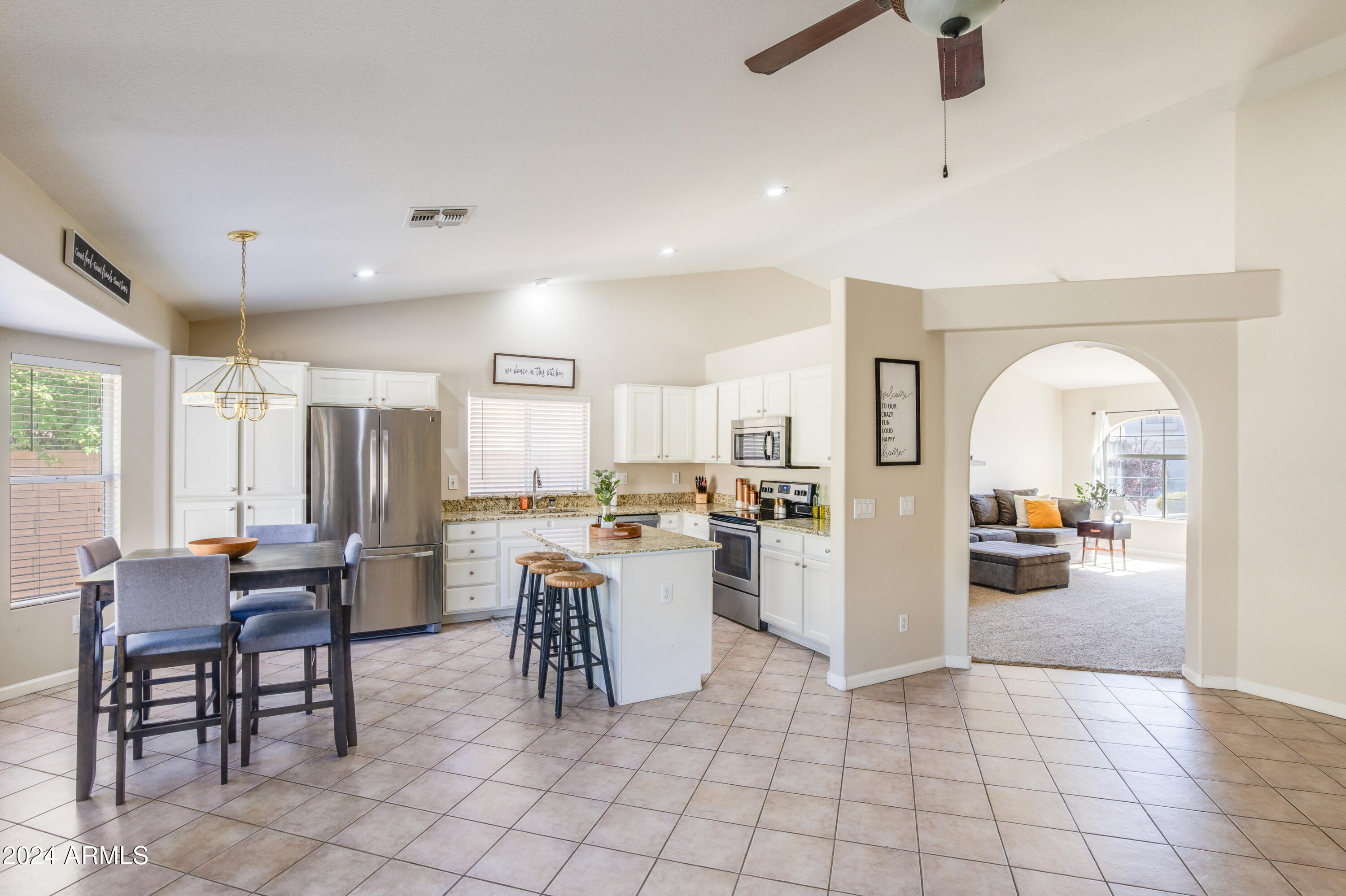 This 4 bedroom single level home in Peoria is absolutely charming and very well loved. This home has been a rental for the past several years and the tenant has cared for it beautifully. Tile and carpeting throughout, NO PETS, and everything is fresh and clean. Kitchen has on trend refreshed cabinets, granite counters and SS appliances. Front Living Room/Dining Room offers fantastic entertainment space in addition to the Family room off of the kitchen. The rear yard is very private, a grassy area and low maintenance landscaping make this a perfect outdoor retreat. The front yard has a lovely courtyard/patio, great curb appeal. Don't miss out on this spacious home in the heart of Peoria. Minutes from the Lake Pleasant shopping/dining corridor and Arrowhead. Mins to freeway access as well.