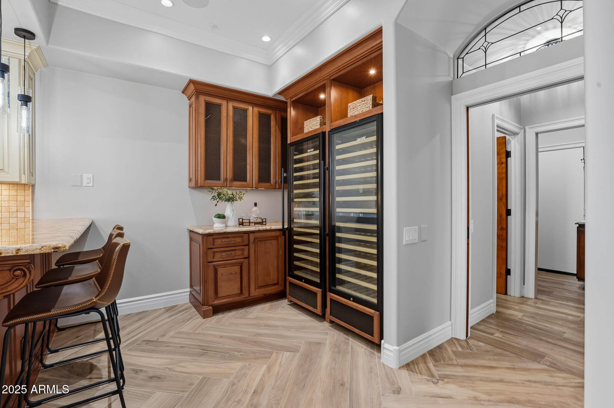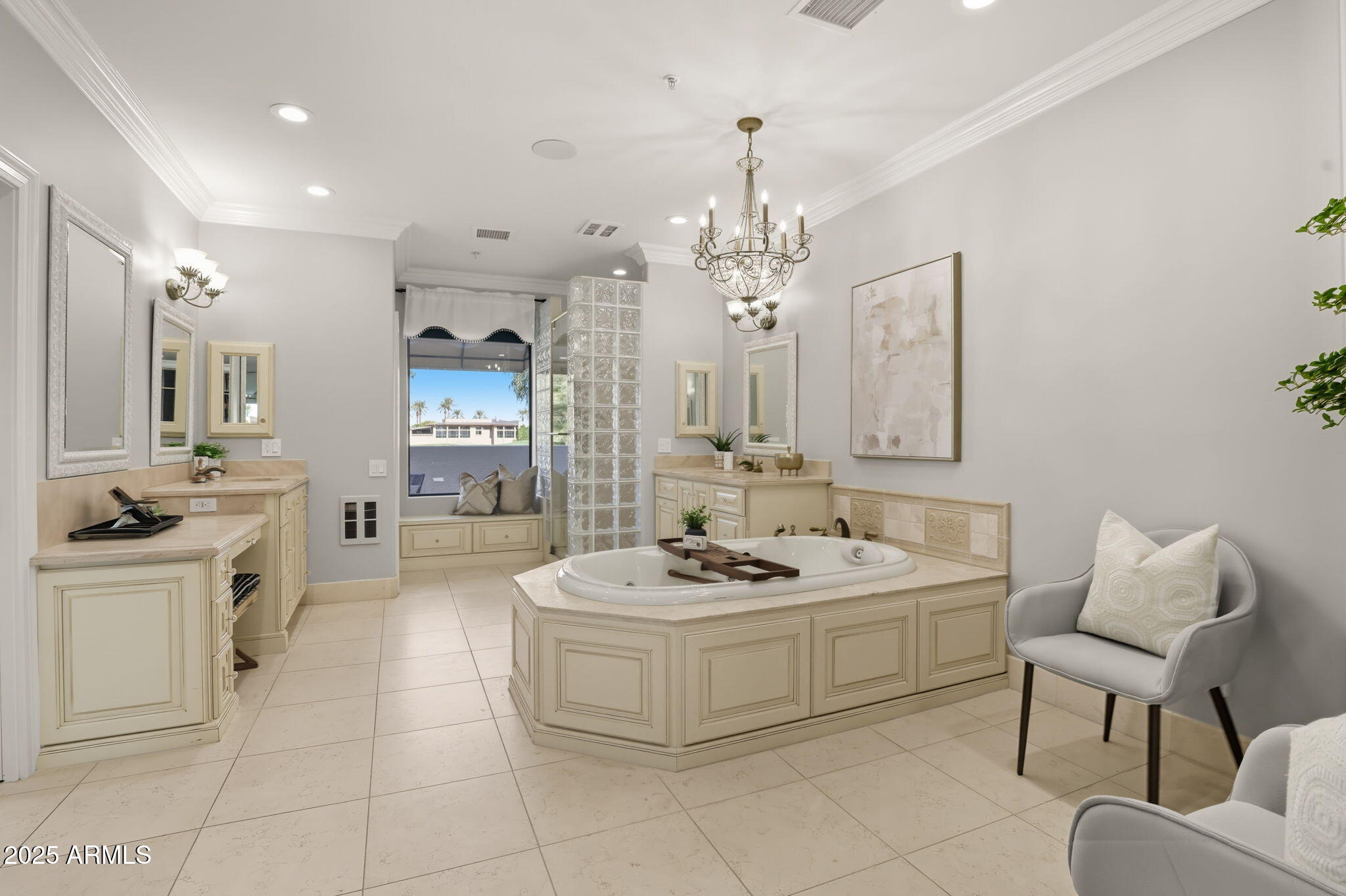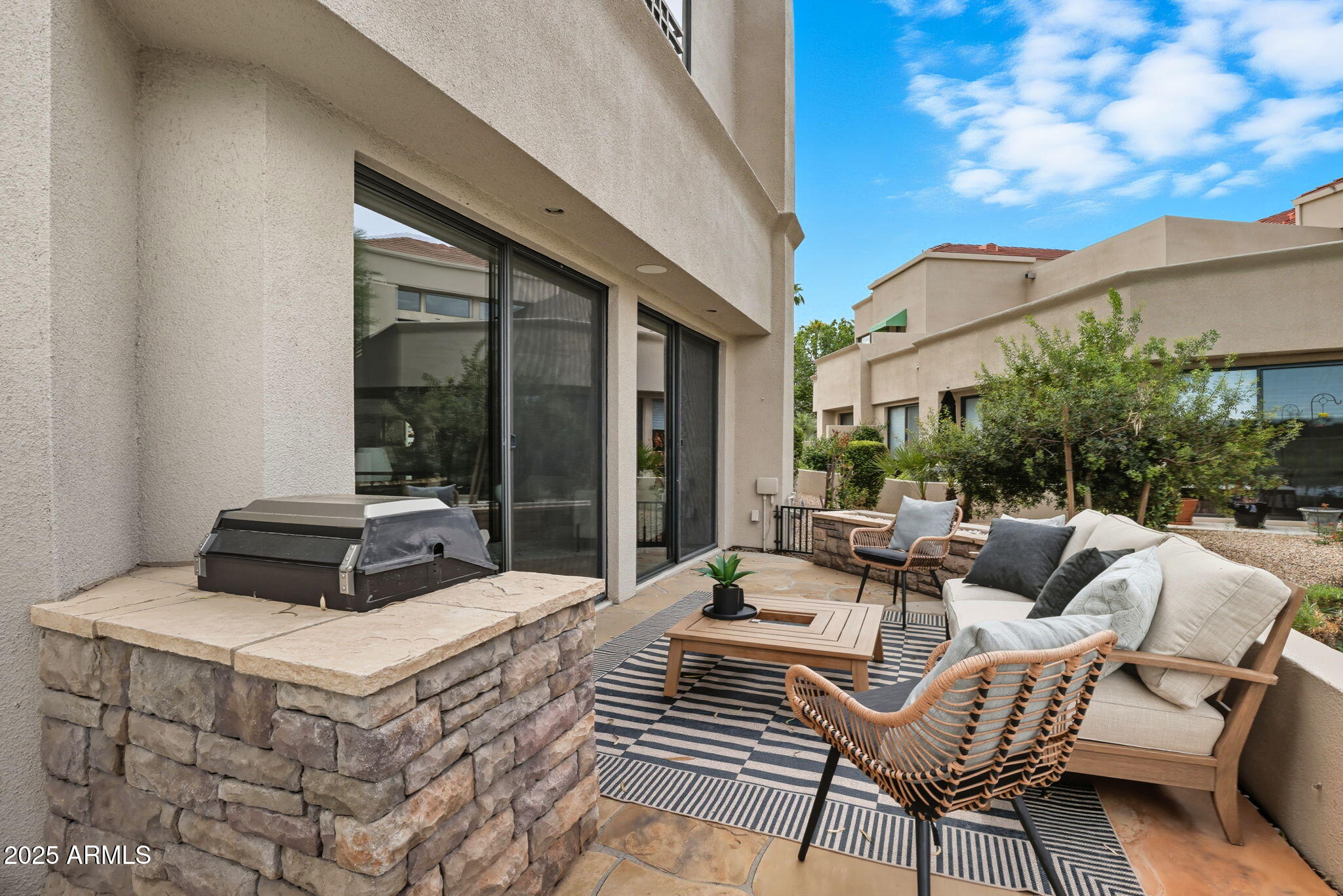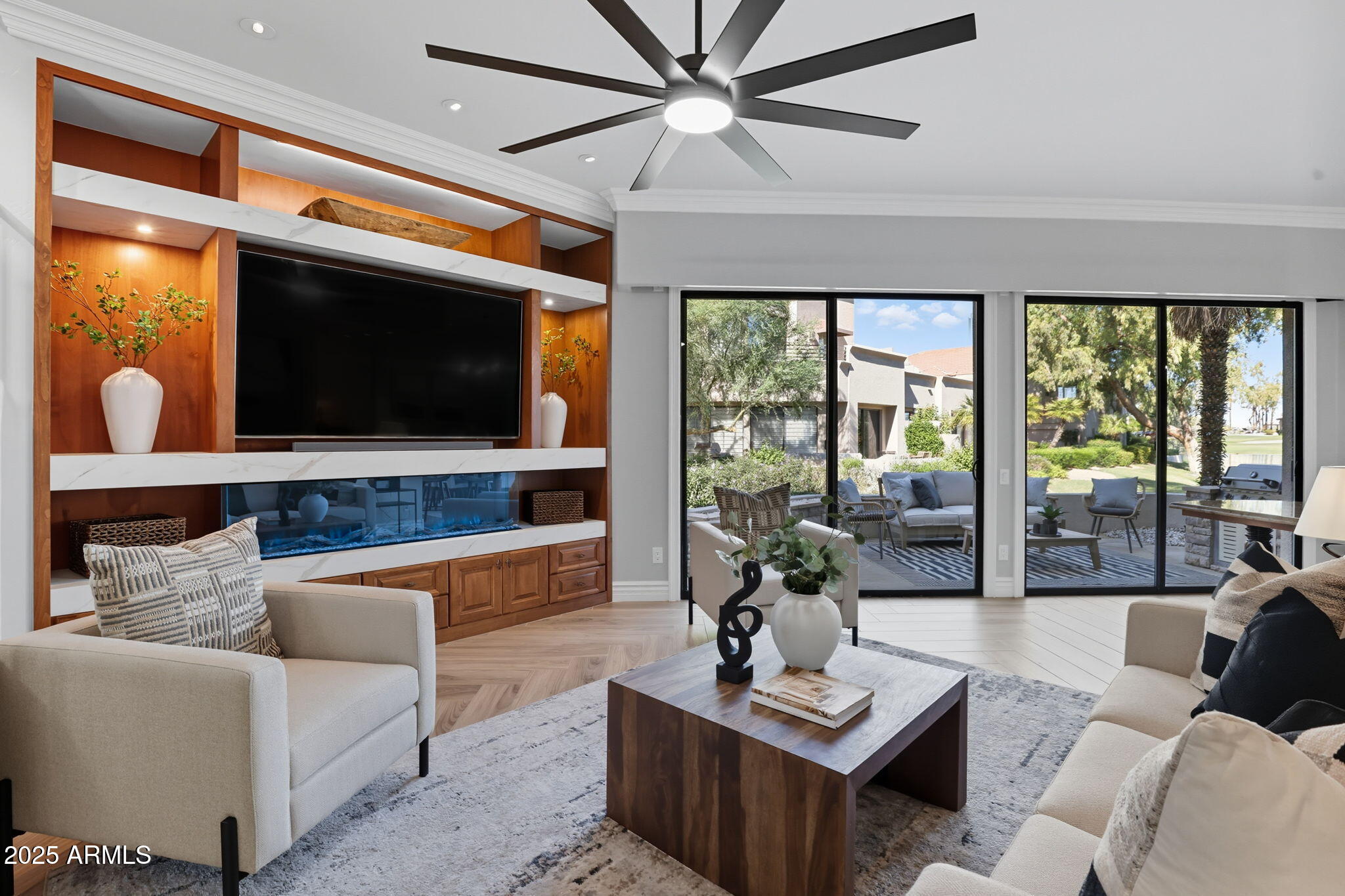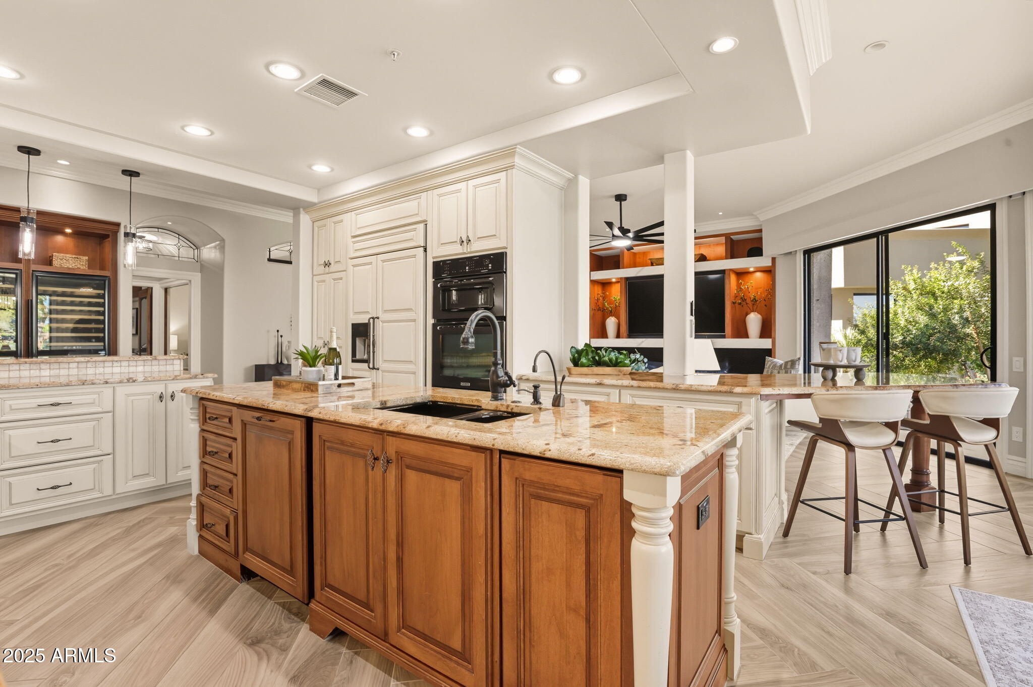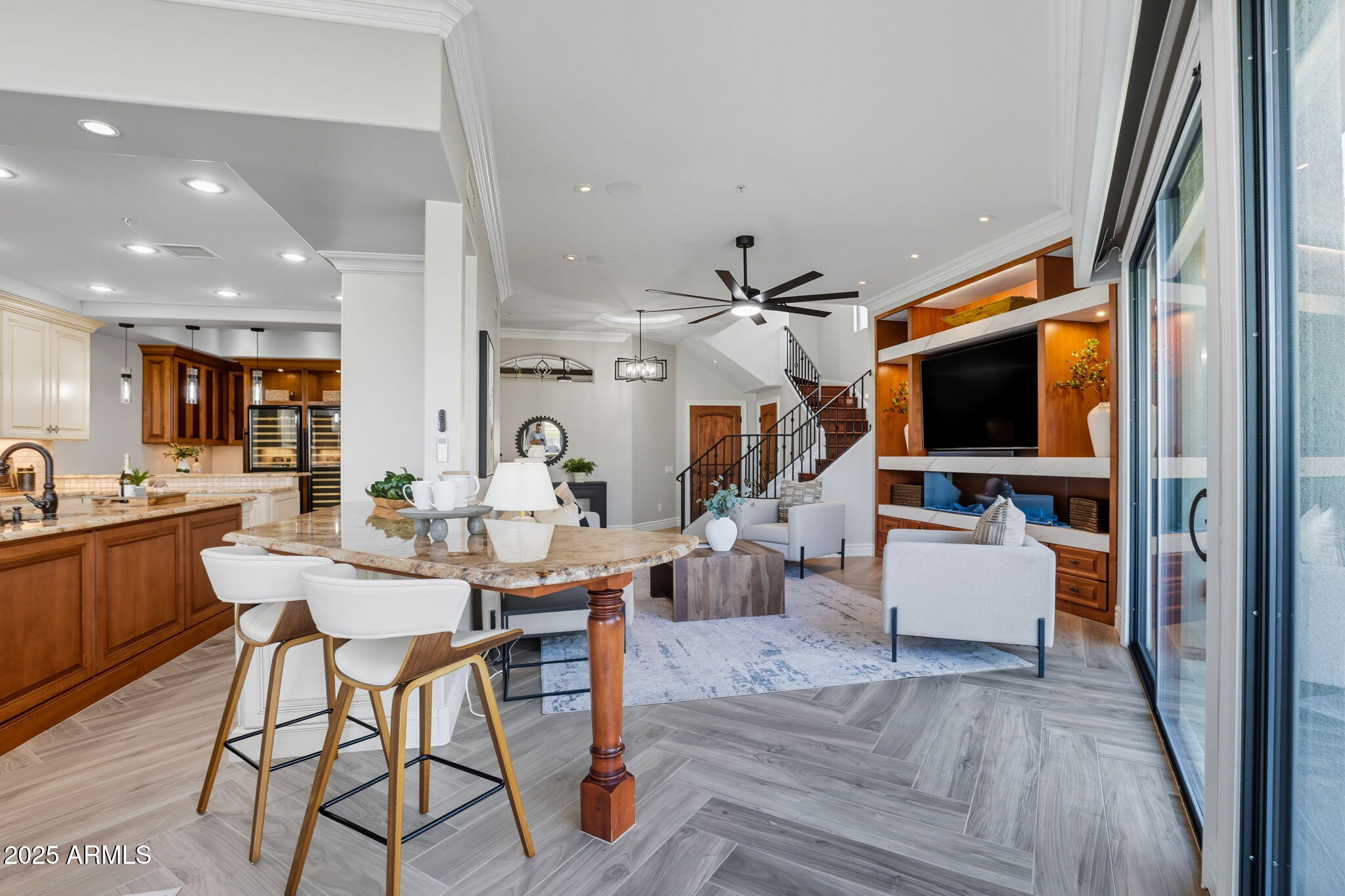 Experience the Gainey Ranch lifestyle in this remodeled & expanded 3 bed, 3 bath home showcasing breathtaking views of the golf course, lake, mountains & clubhouse. The spacious great room opens to a wraparound patio with BBQ & stone fireplace, ideal for entertaining. The gourmet kitchen features granite counters, a large island, custom cabinetry, two breakfast bars & top-of-the-line appliances, plus a custom bar with 200-bottle wine fridge. Upstairs, the primary suite offers a private balcony, sitting area, walk-in closet & spa bath with jacuzzi tub. Two additional bedrooms and a flexible exercise or bonus room complete the layout. Enjoy resort-style living with pools, spas, walking trails, and world-class dining & shopping nearby--plus the Hyatt Regency just steps away.