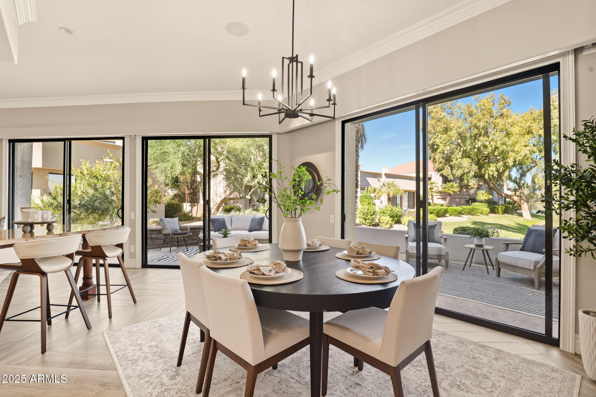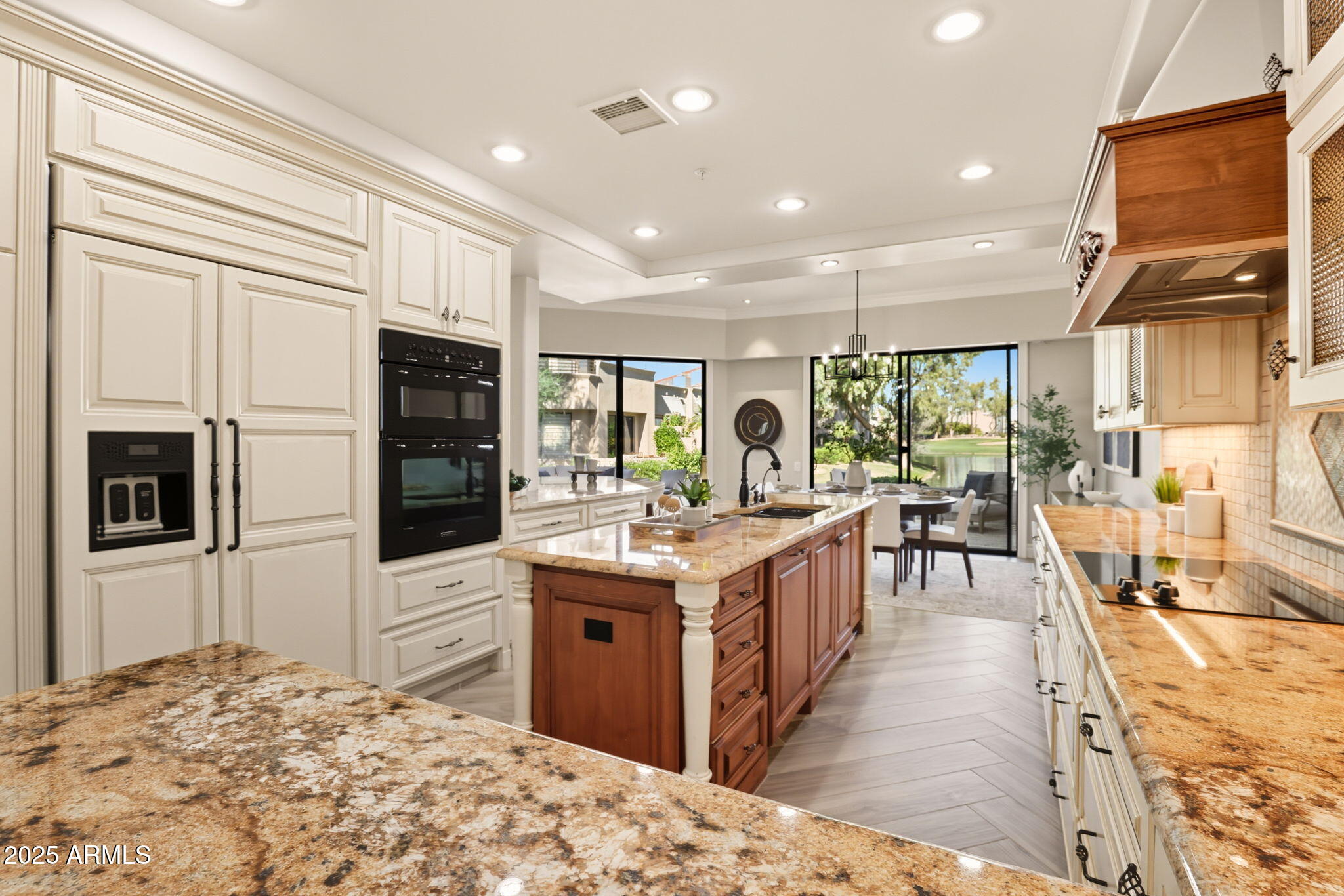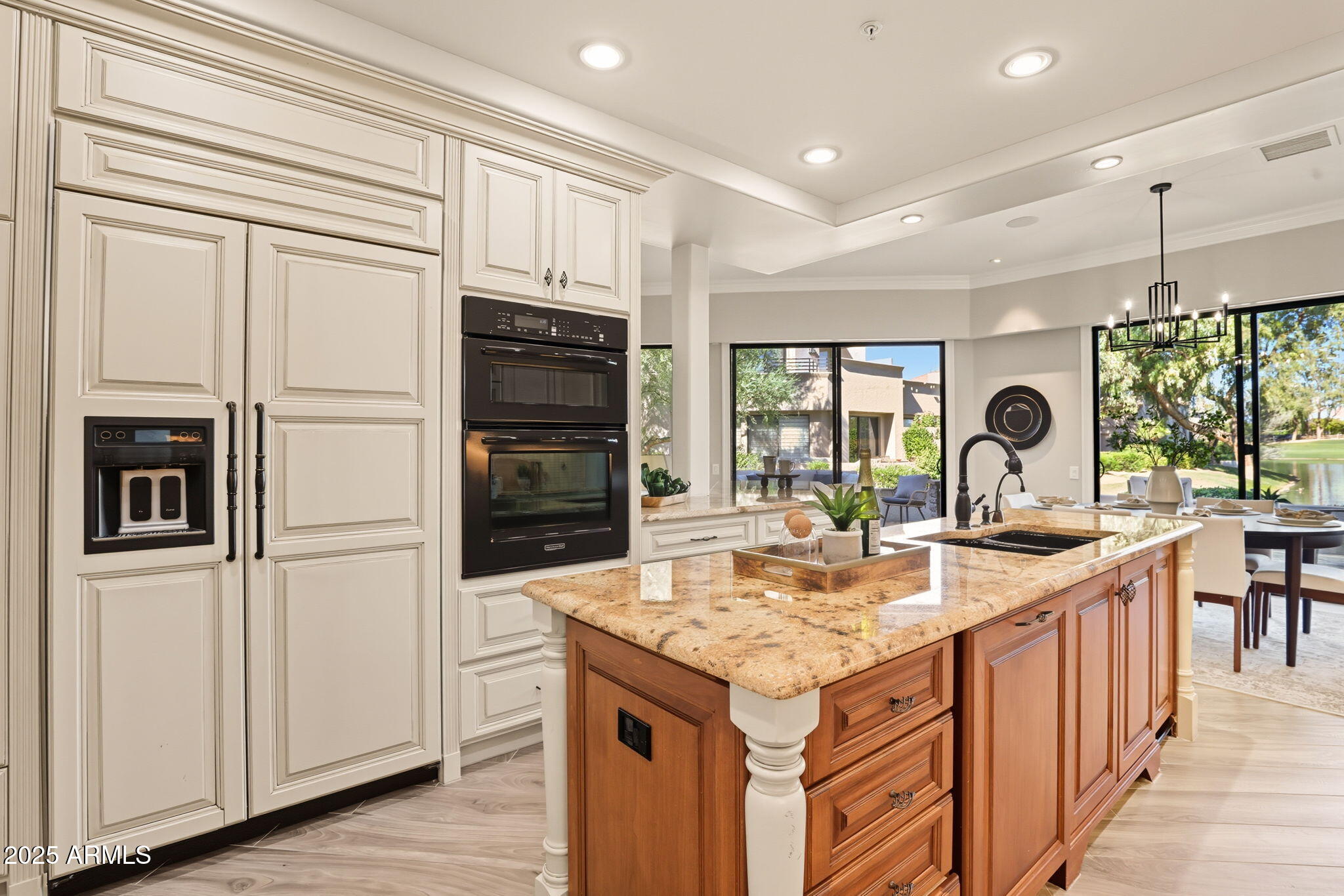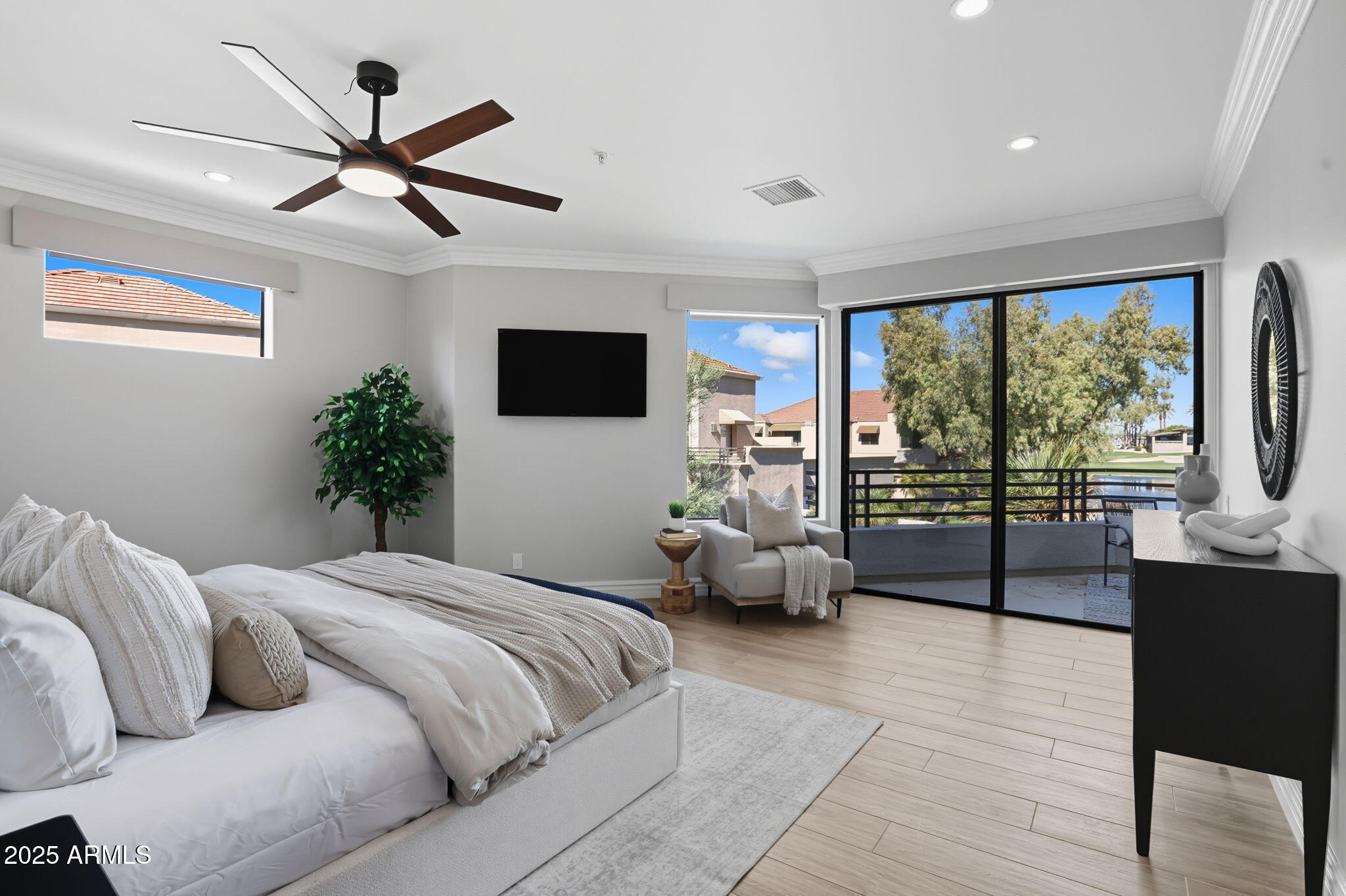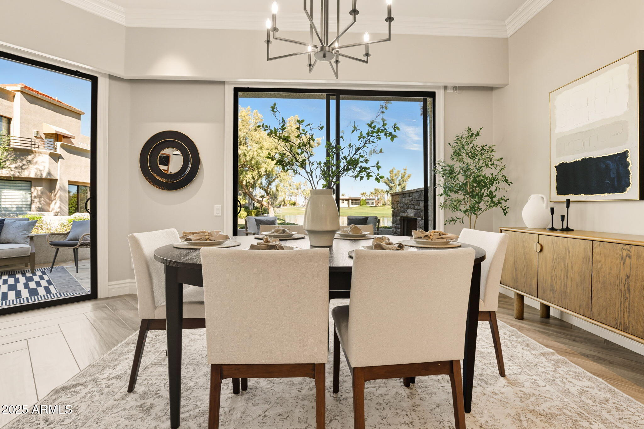 Experience the Gainey Ranch lifestyle in this remodeled & expanded 3 bed, 3 bath home showcasing breathtaking views of the golf course, lake, mountains & clubhouse. The spacious great room opens to a wraparound patio with BBQ & stone fireplace, ideal for entertaining. The gourmet kitchen features granite counters, a large island, custom cabinetry, two breakfast bars & top-of-the-line appliances, plus a custom bar with 200-bottle wine fridge. Upstairs, the primary suite offers a private balcony, sitting area, walk-in closet & spa bath with jacuzzi tub. Two additional bedrooms and a flexible exercise or bonus room complete the layout. Enjoy resort-style living with pools, spas, walking trails, and world-class dining & shopping nearby--plus the Hyatt Regency just steps away.