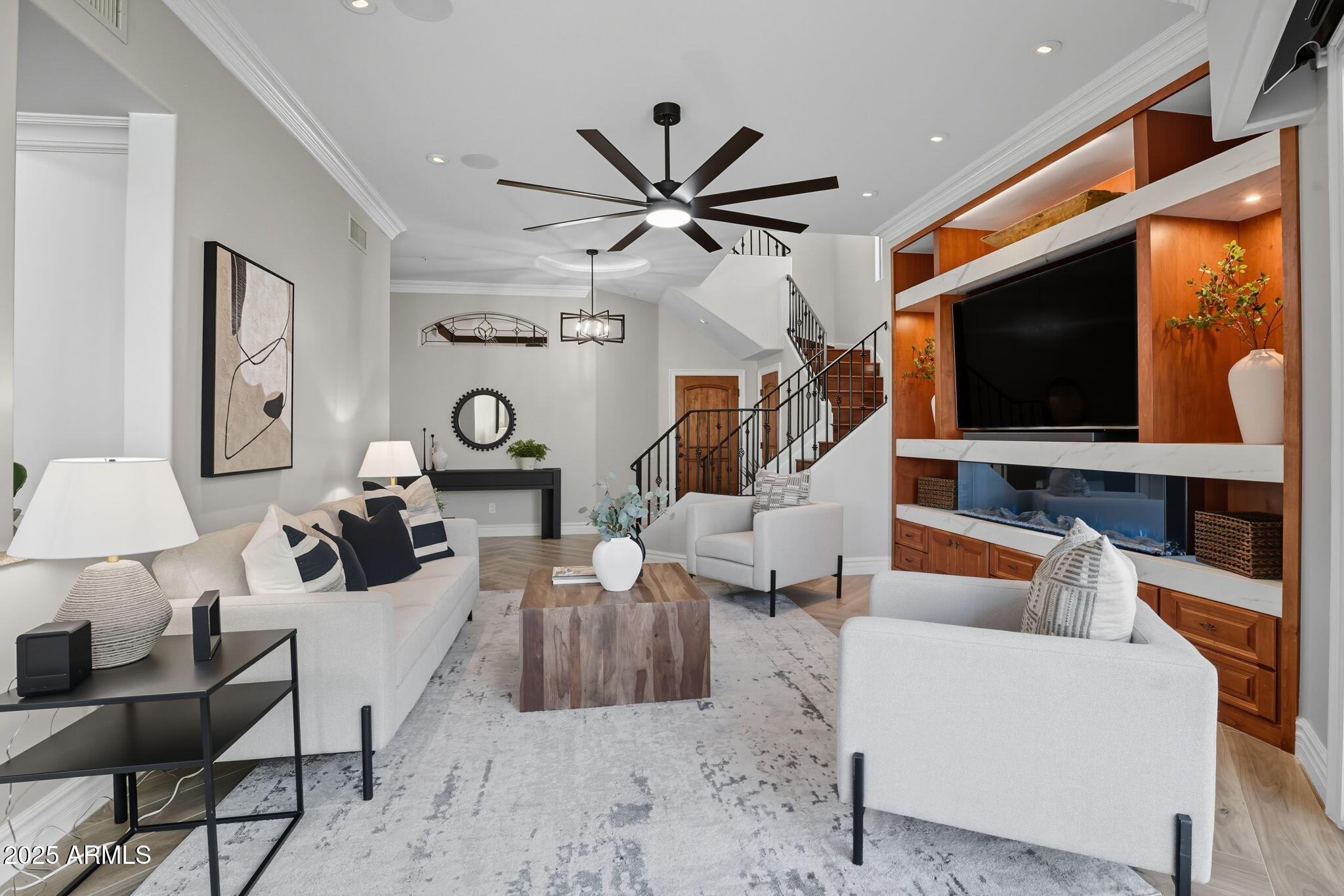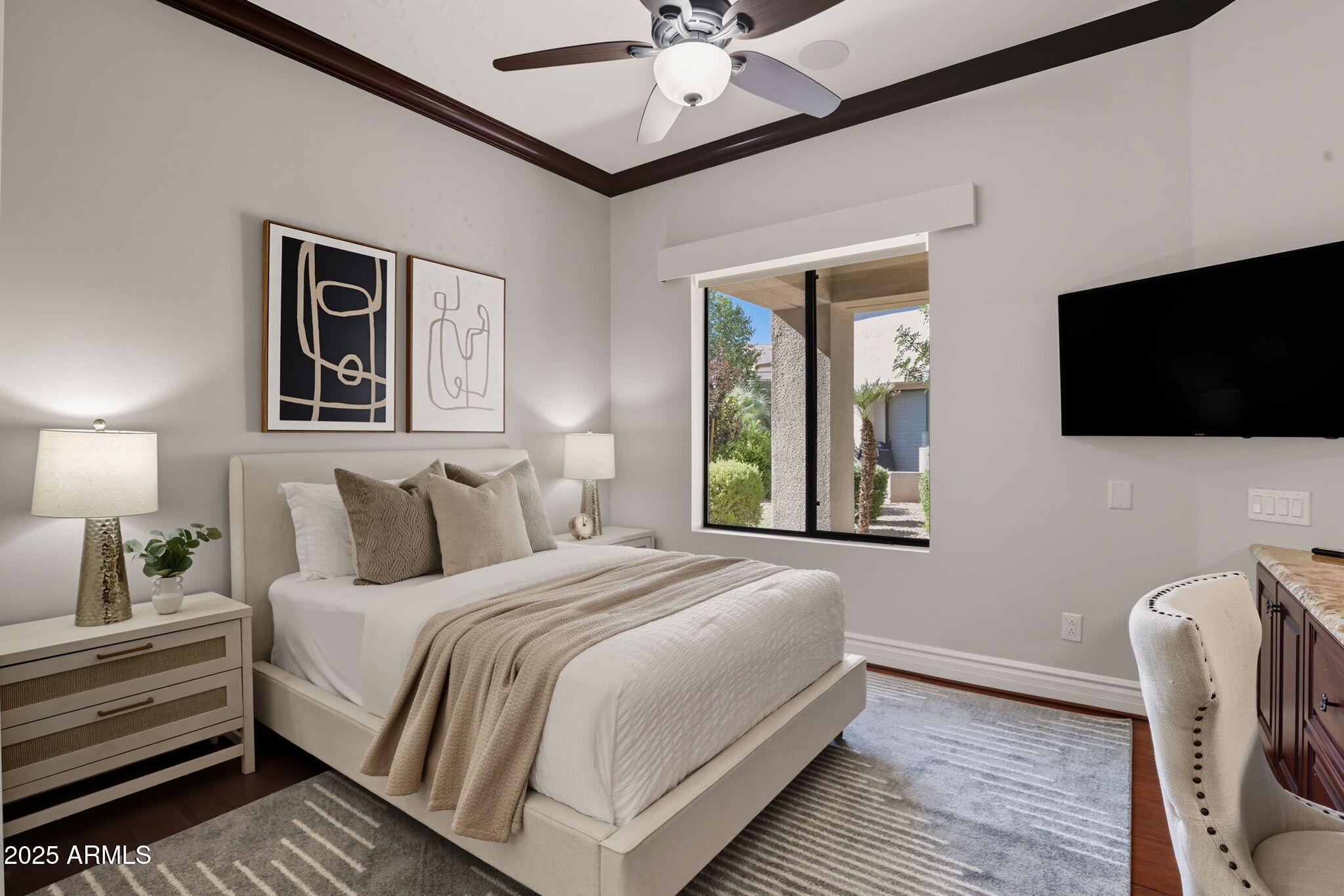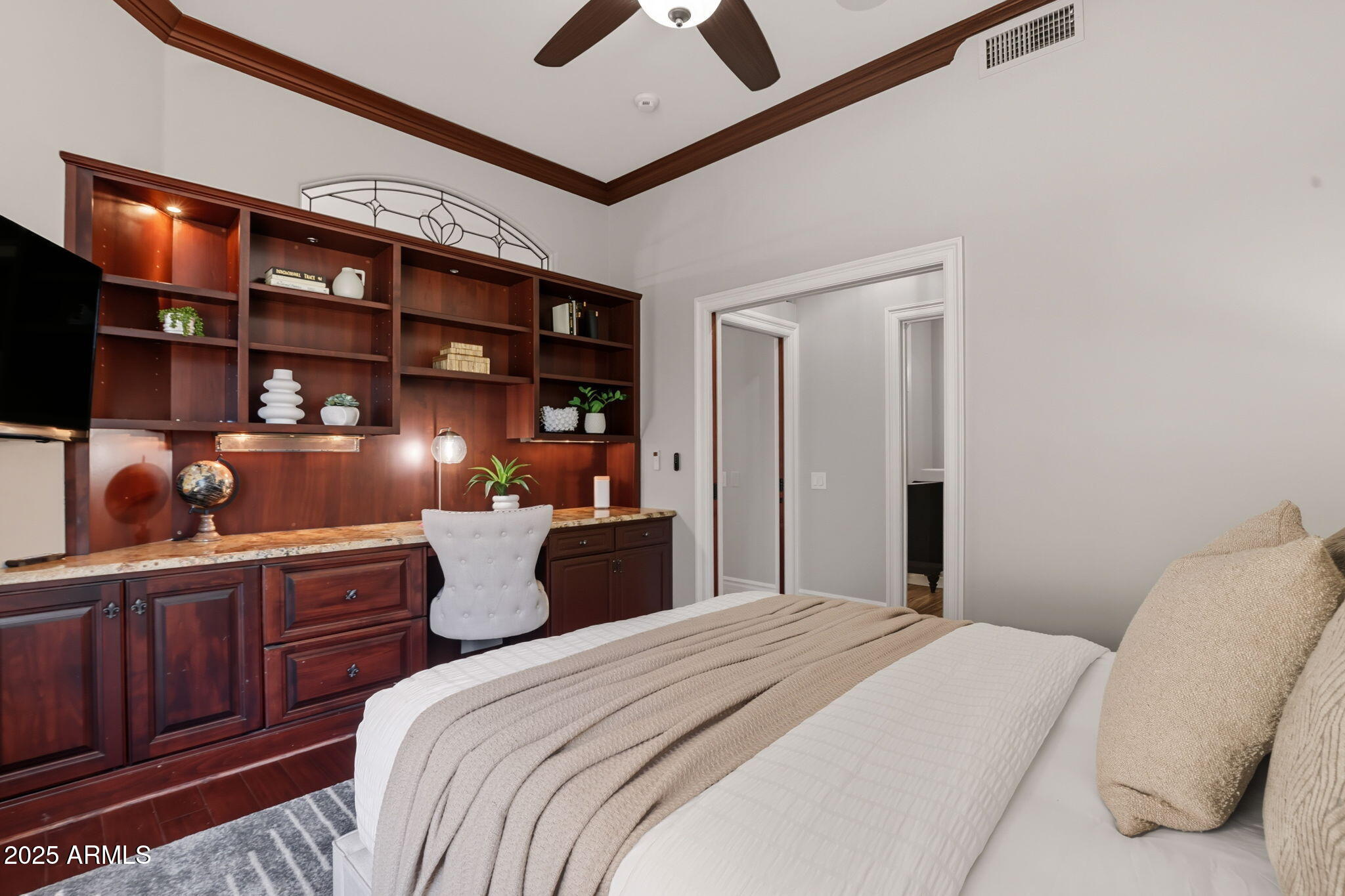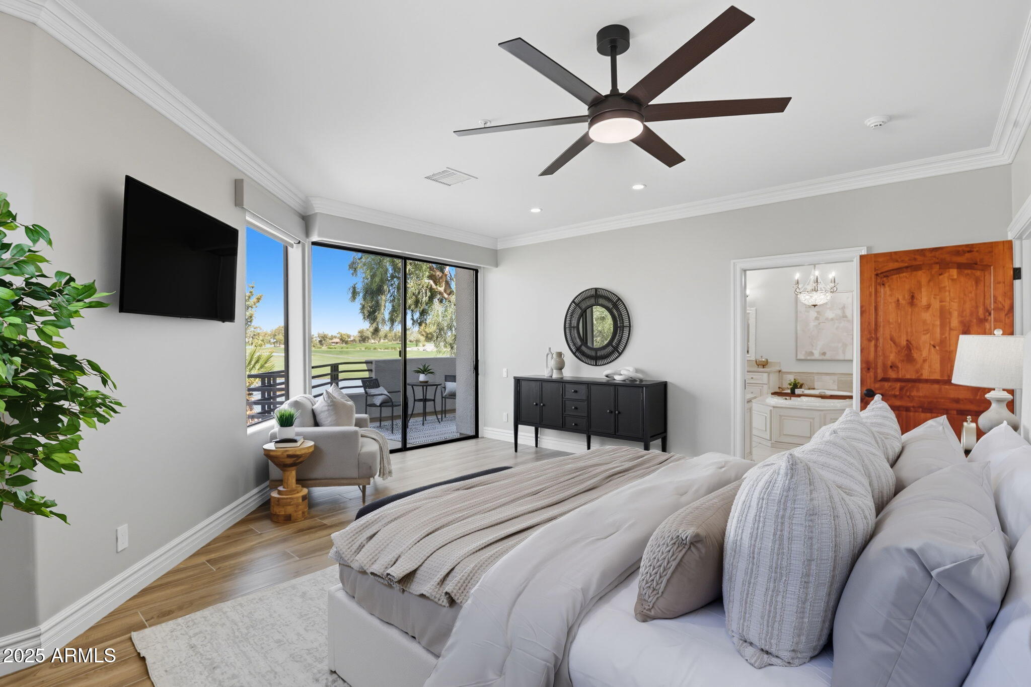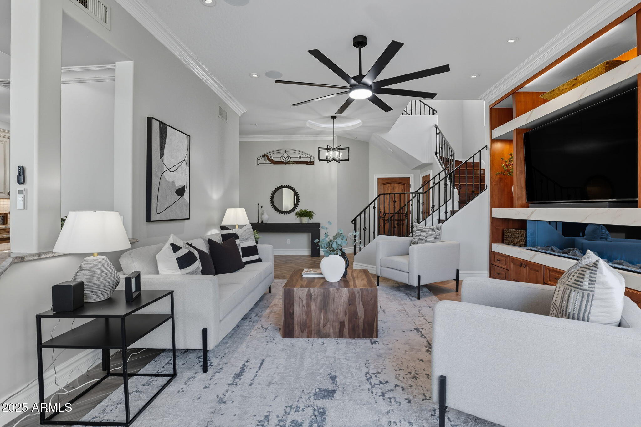 Experience the Gainey Ranch lifestyle in this remodeled & expanded 3 bed, 3 bath home showcasing breathtaking views of the golf course, lake, mountains & clubhouse. The spacious great room opens to a wraparound patio with BBQ & stone fireplace, ideal for entertaining. The gourmet kitchen features granite counters, a large island, custom cabinetry, two breakfast bars & top-of-the-line appliances, plus a custom bar with 200-bottle wine fridge. Upstairs, the primary suite offers a private balcony, sitting area, walk-in closet & spa bath with jacuzzi tub. Two additional bedrooms and a flexible exercise or bonus room complete the layout. Enjoy resort-style living with pools, spas, walking trails, and world-class dining & shopping nearby--plus the Hyatt Regency just steps away.