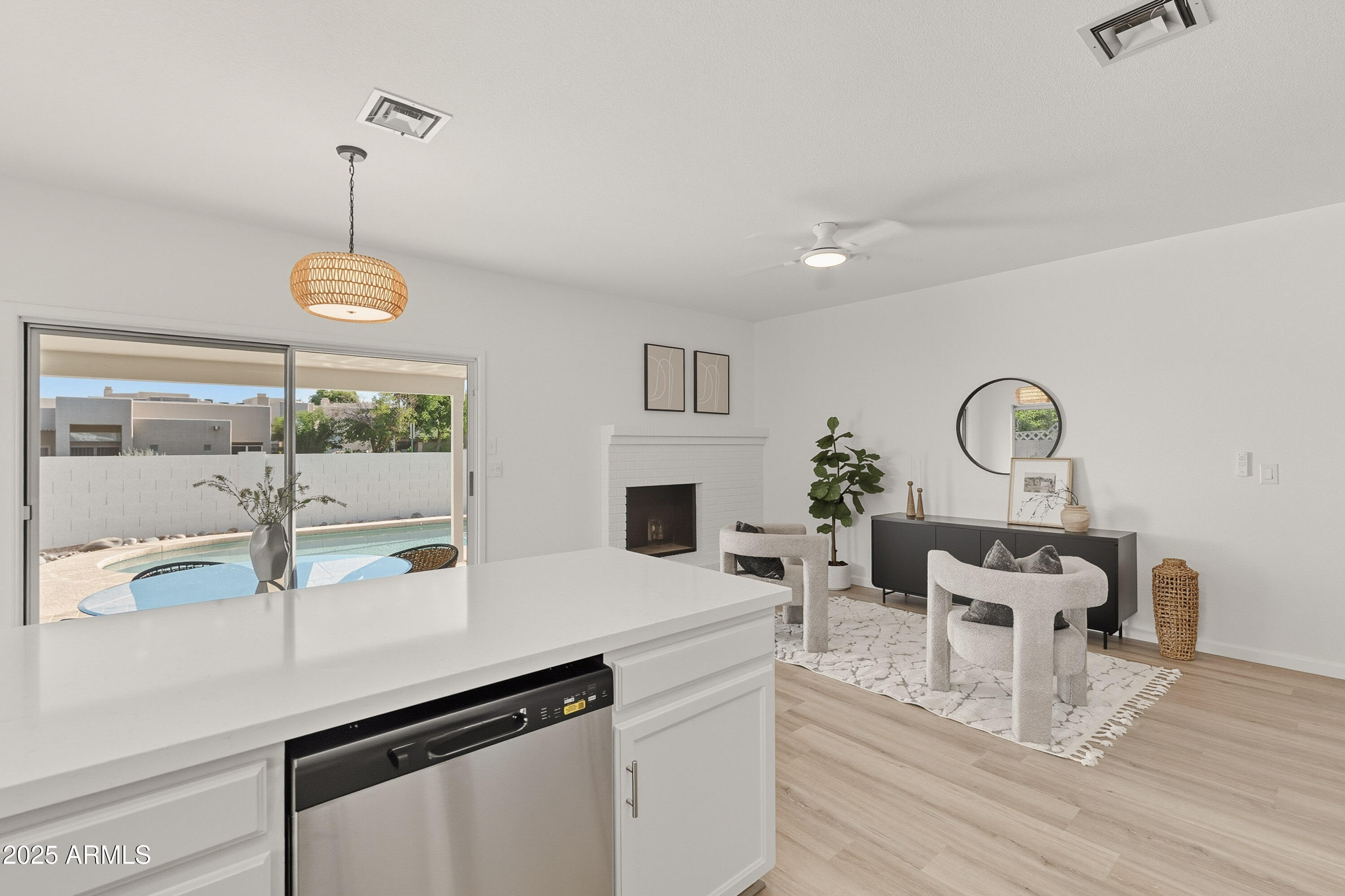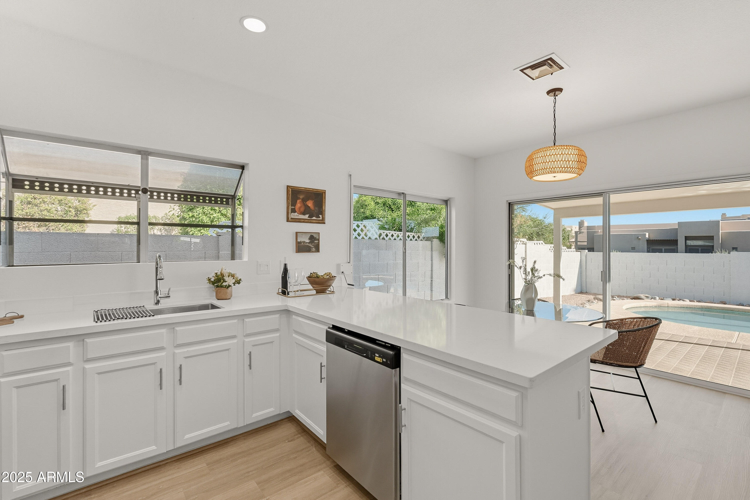 Step inside to find fresh paint, updated flooring, quartz counters, stainless steel appliances, and stylish new lighting--everything move-in ready so you can start enjoying right away. The bright, open floor plan offers vaulted ceilings, a welcoming living area, and a cozy dining space perfect for weekend gatherings. This friendly neighborhood features a children's play area and a dog park right out of the front door. Area is known for top rated Scottsdale schools, minutes from HonorHealth Shea, shopping, dining, and freeway access. Whether you're looking for your first home, downsizing, this home checks all boxes