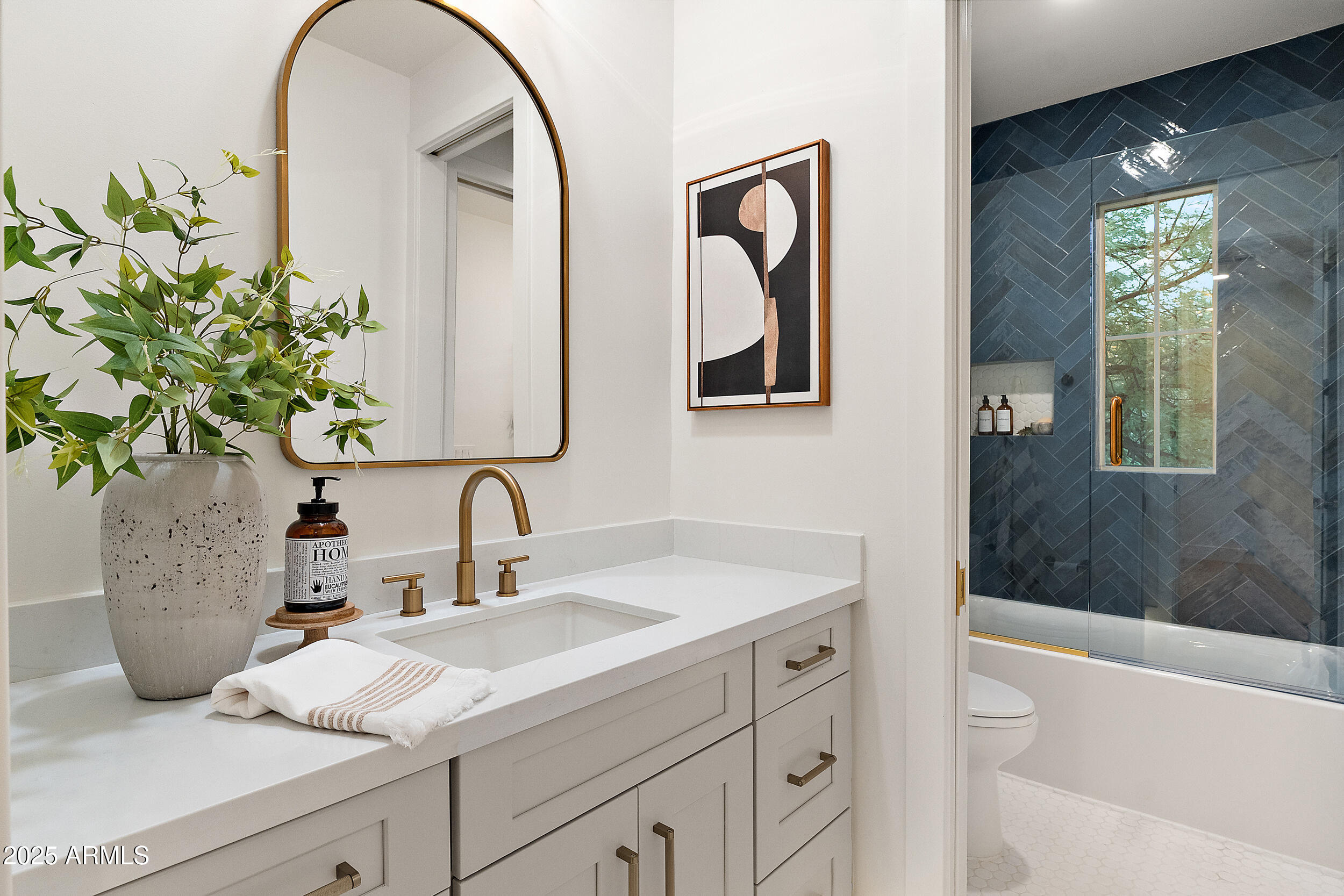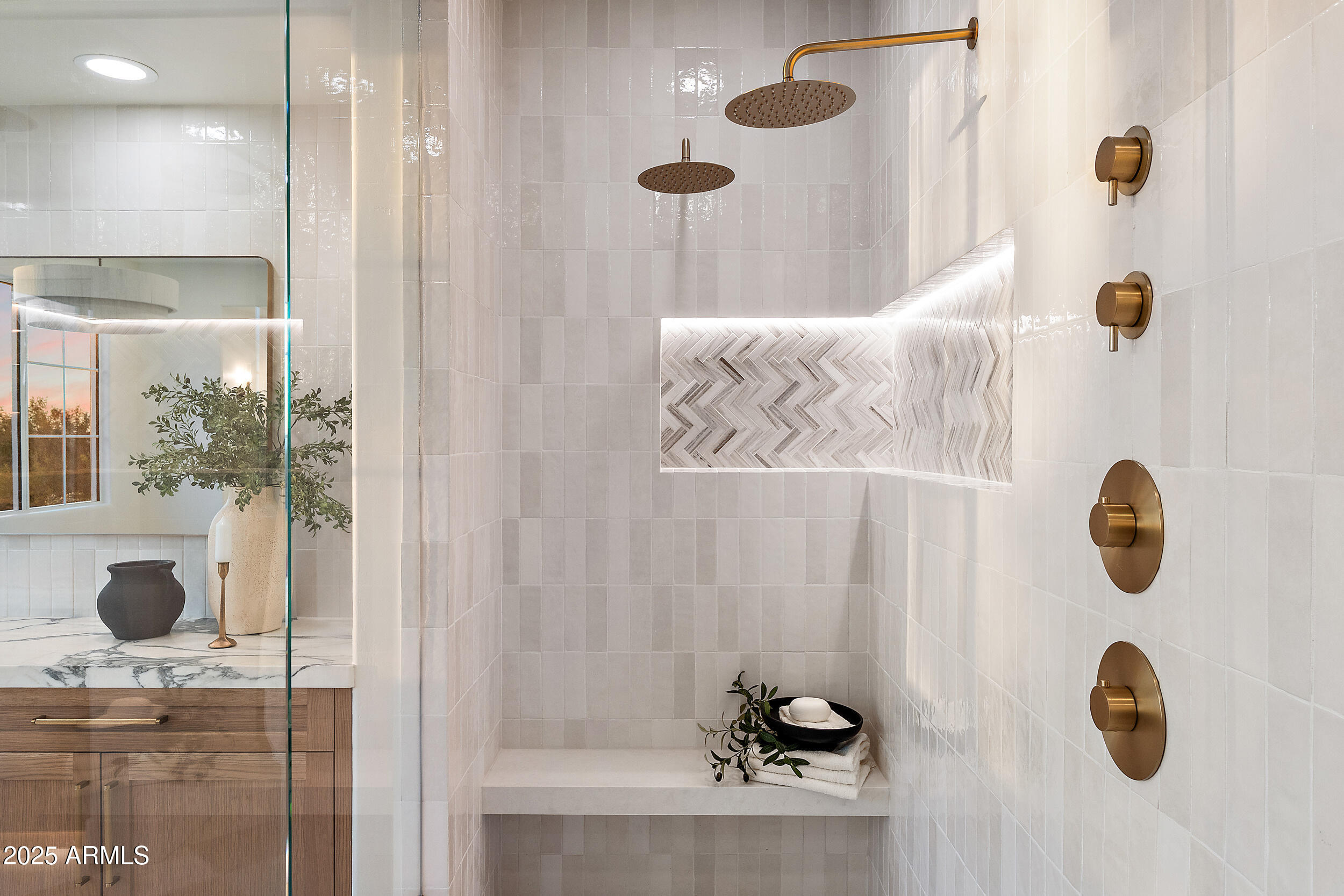 Discover a reimagined DC Ranch estate where sophistication, style, & modern design converge. Crafted for unforgettable entertaining & ease of day-to-day living, the open concept floor plan is anchored by a chef's kitchen featuring high-end SubZero & Wolf appliances, dual dishwashers, ice maker, beverage fridge, & dramatic Taj Mahal quartzite waterfall island.