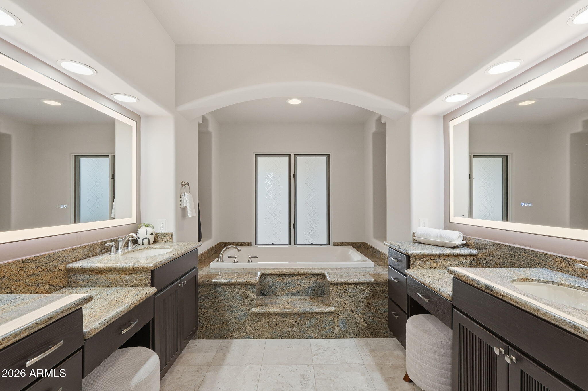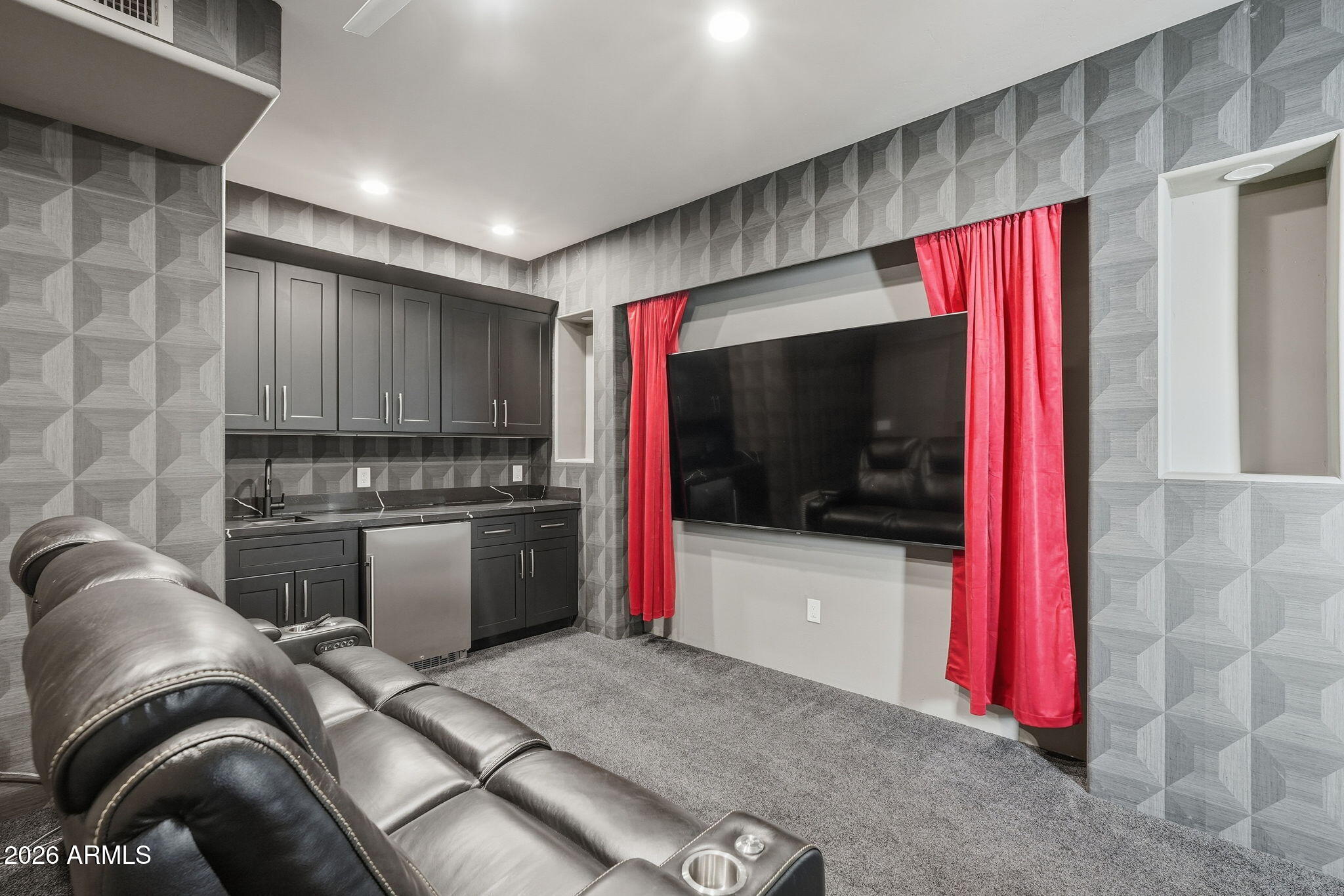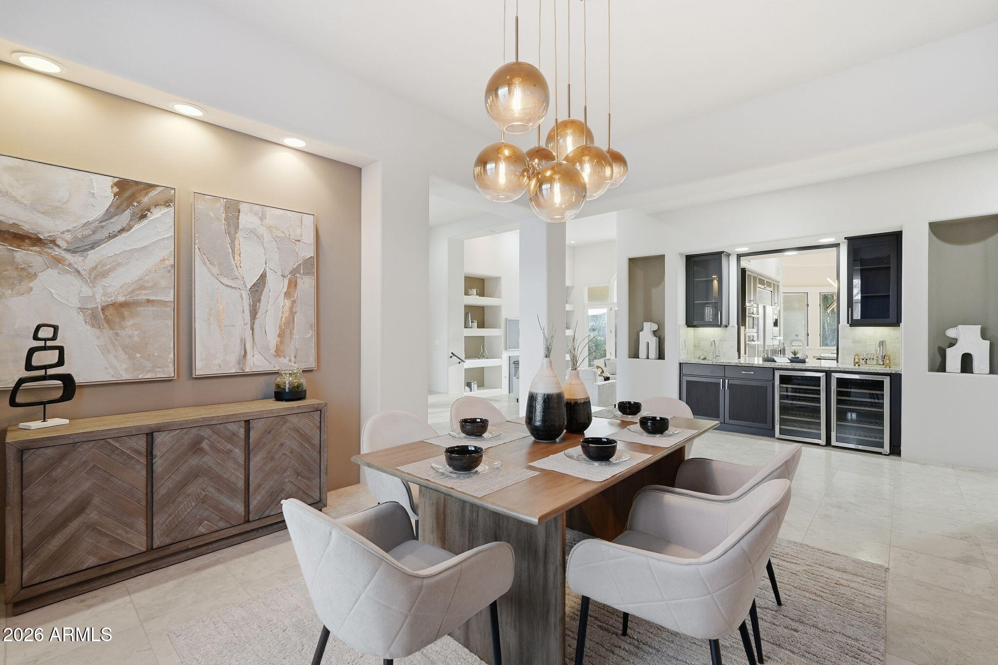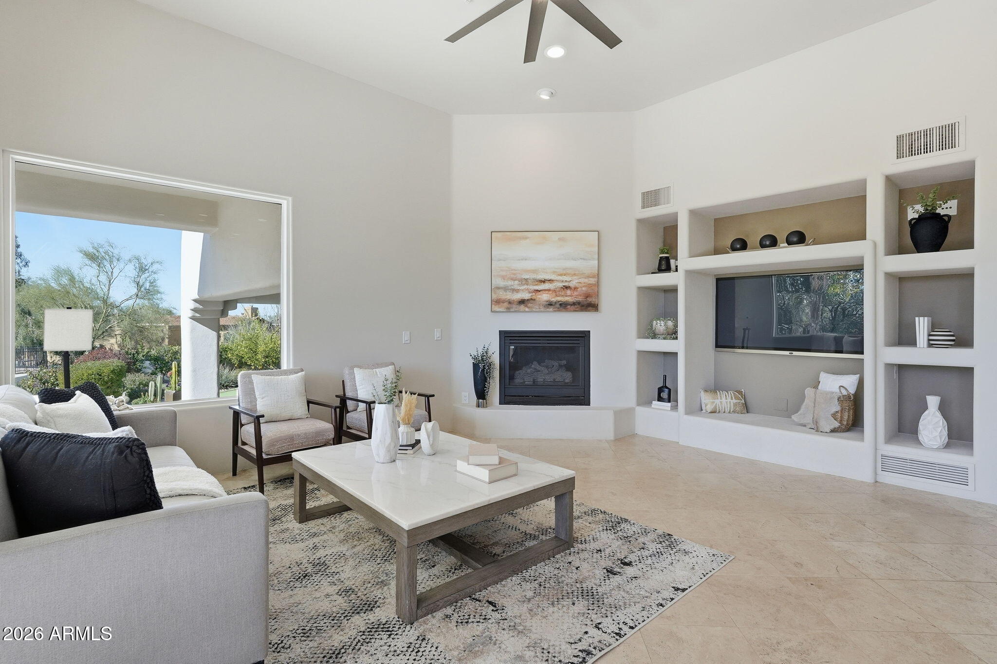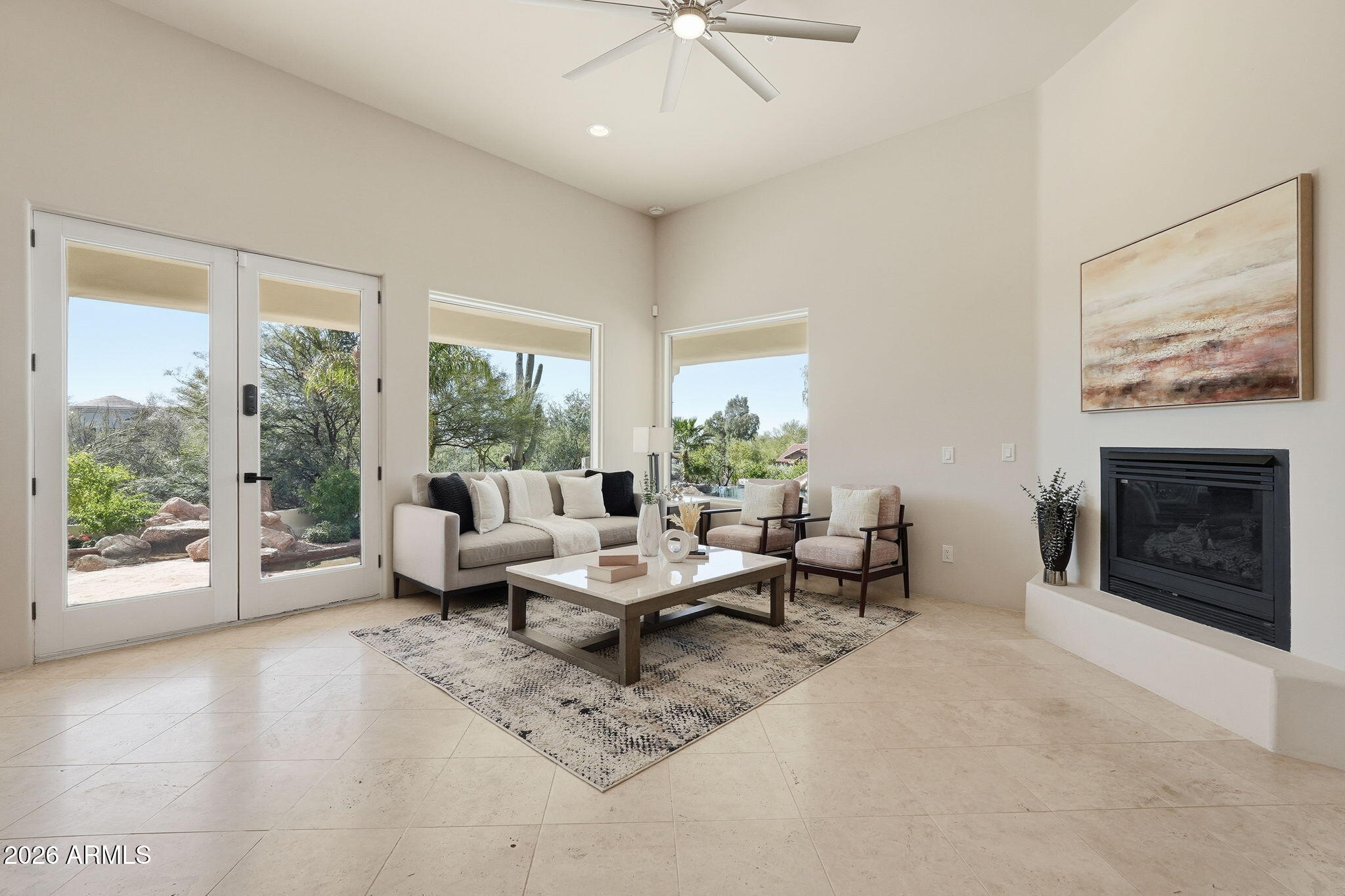 NO HOA! Amazing Pinnacle Peak Estate set on 1.6 private acres with sweeping, cinematic panoramic mountain views and not one but two rooftop decks to enjoy the views too! For your desert enjoyment there's also 1800 SF of covered patio space and incredible water features in the front and back that exude elegance and enjoyment. This contemporary property has been refreshed in all of the right spaces and places. As you enter the home, you'll immediately notice the custom entry glass that sellers had especially designed for the home. The home is split floor plan with three spacious bedrooms on one side of the home, one of which has a custom Murphy bed unit built in, which sellers added. Opposite the guest bedrooms wing on the other side of the home is the primary bedroom and laundry room, which have also been redone. The primary closet has new California Closet custom cabinetry along with a custom built-in bar area with new beverage fridge. The dining room has a built in pass-through bar area from the kitchen that sellers opened up and added two new wine fridges. The kitchen itself has upgraded top-of-the-line New Miele kitchen appliances, including an induction stovetop, convection oven, steam convection oven, built-in super automatic coffee station and a warming drawer. Built-in Subzero fridge and freezer too. Cabinets in the kitchen and bar area have been refinished. Home automation added throughout the home, including the lighting, locks, thermostats, pool, spa, pond and garage doors. A number of the windows and seals are new too! Adjacent from the open living room which flows to the kitchen and open breakfast nook are stairs that take you up to the home theater that the sellers developed. In the theater, there is a door that takes you to a spacious outdoor patio deck with city views along with panoramic mountain views of the McDowells, Troon, Pinnacle Peak and more. On the exterior, the sellers have added new landscaping and lighting and you have an oversized outdoor kitchen area equipped with plenty serving space, a sink and even a professional style pizza oven! The upper deck is new along with new railings. New pool and fountain equipment along with pool automation. Putting green allows for your enjoyment and has some of the best overall views of the lot and the home too. The AC units have all been reconditioned and AC has been added into the newly epoxied garage. Garage also has new door operators with cameras and power for two (2) EV car charges in the garage. This home not only has upgrades for your enjoyment but also OWNED TESLA SOLAR too to help with cost savings on your electric! Moreover, for your safety, sellers have added a new alarm system too.