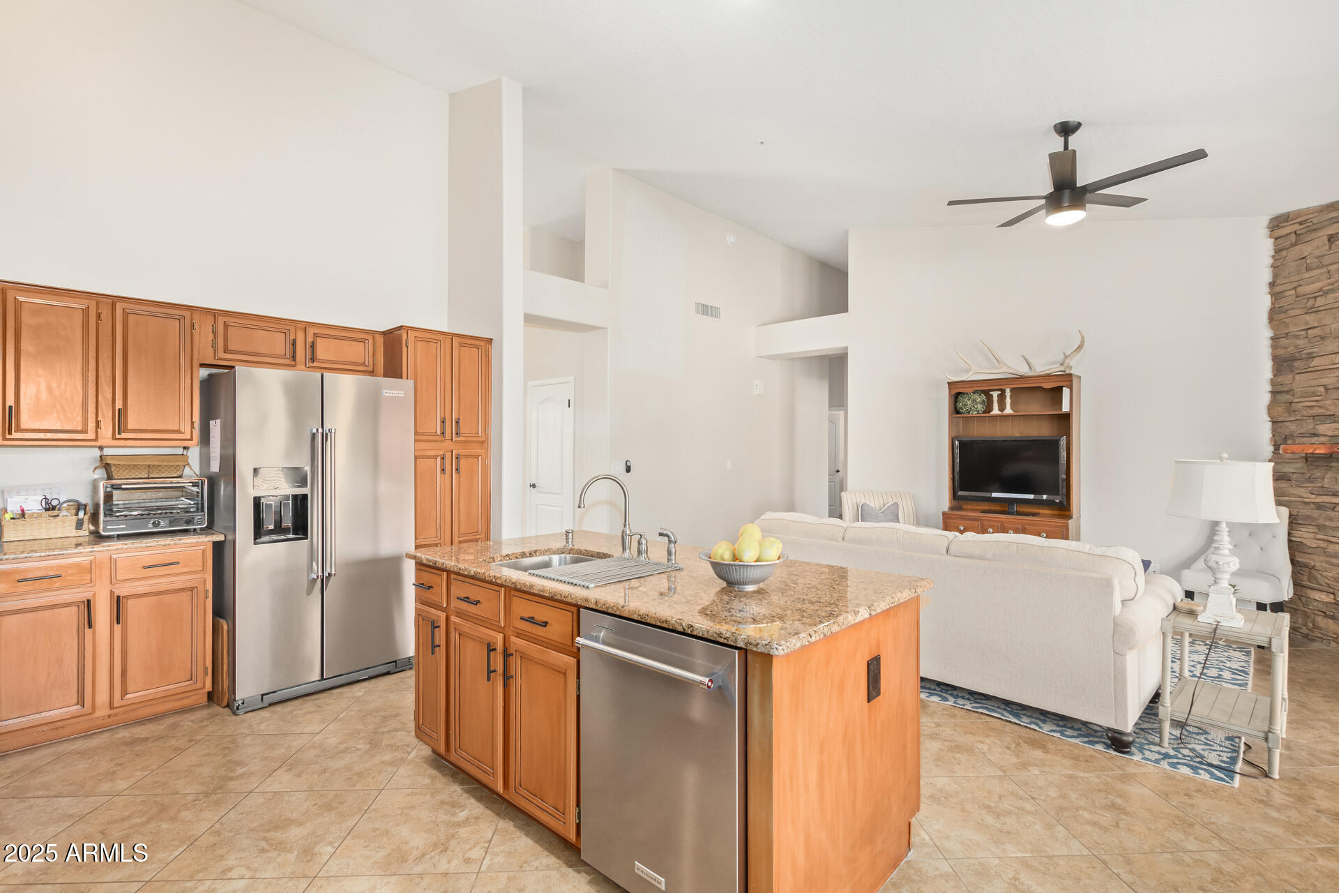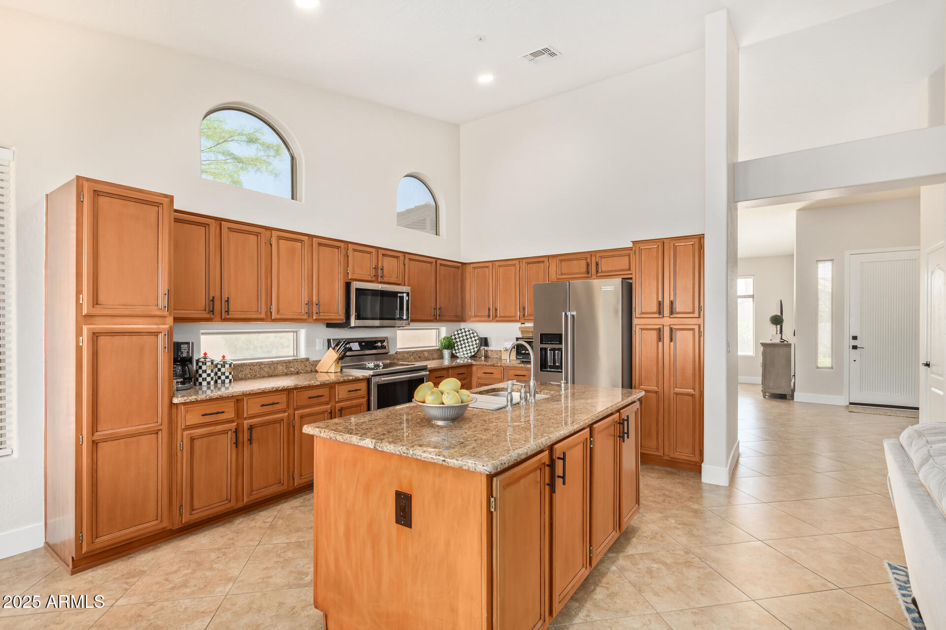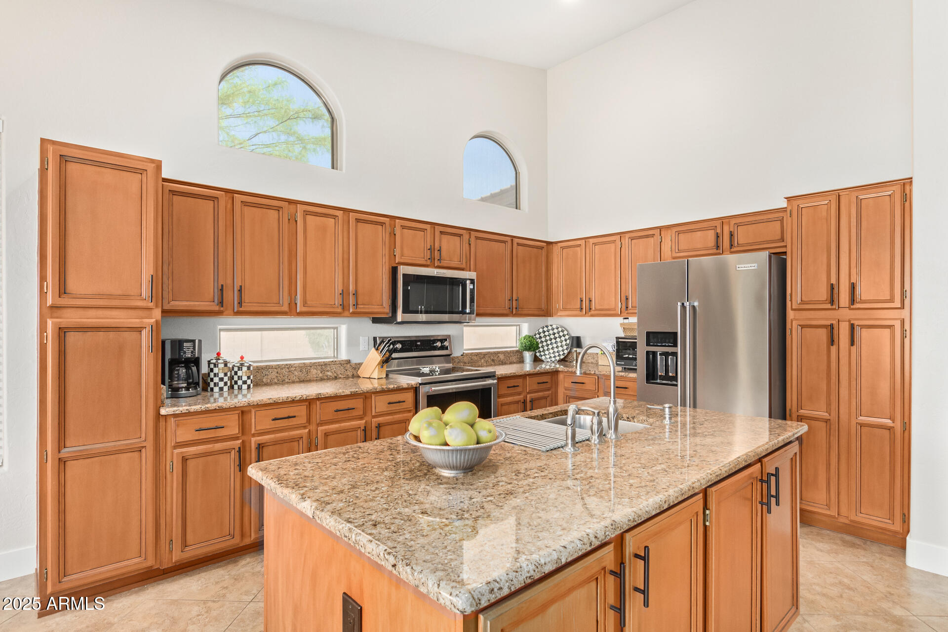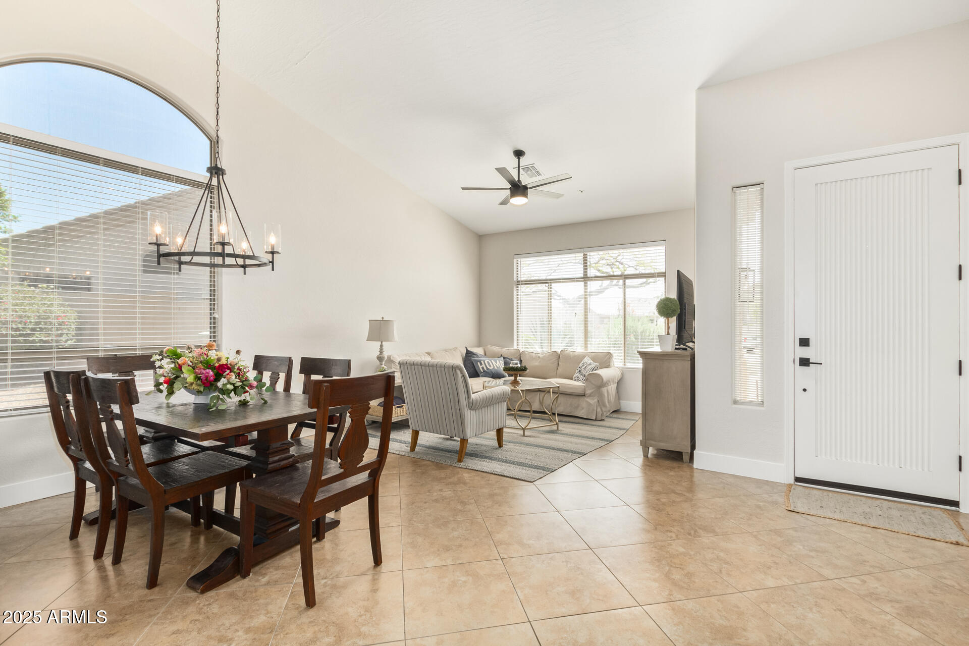 This gorgeous property sits on over a quarter acre featuring a spacious 3-car garage. Explore inside to discover fabulous living & dining areas offering vaulted ceilings, neutral tile floor, & bountiful natural light. Stone fireplace in the family room! The beautiful kitchen boasts wood cabinetry, granite counters, new Kitchen Aid SS appliances, backsplash windows, LED lighting, & a center island. Fiber optics throughout. Double doors open to the main retreat showcasing plush carpet, a private bathroom with granite dual sinks, a walk-in closet, & direct access to the back patio. Enjoy relaxing along with your loved ones in the wonderful backyard including a covered patio, a refreshing blue pool. Pool/Lanscaping included in lease price. Pool fence installed. HOA included in lease price