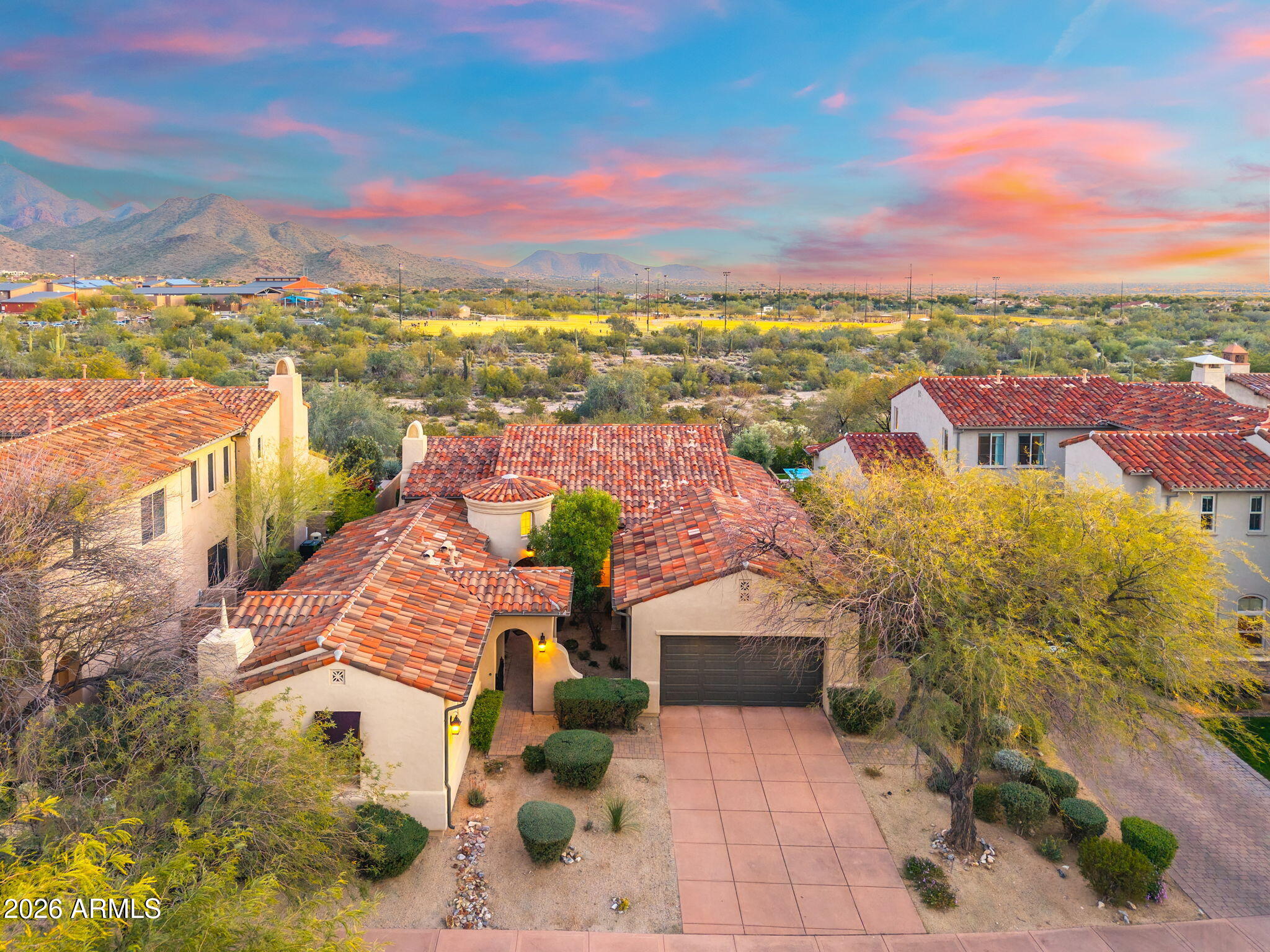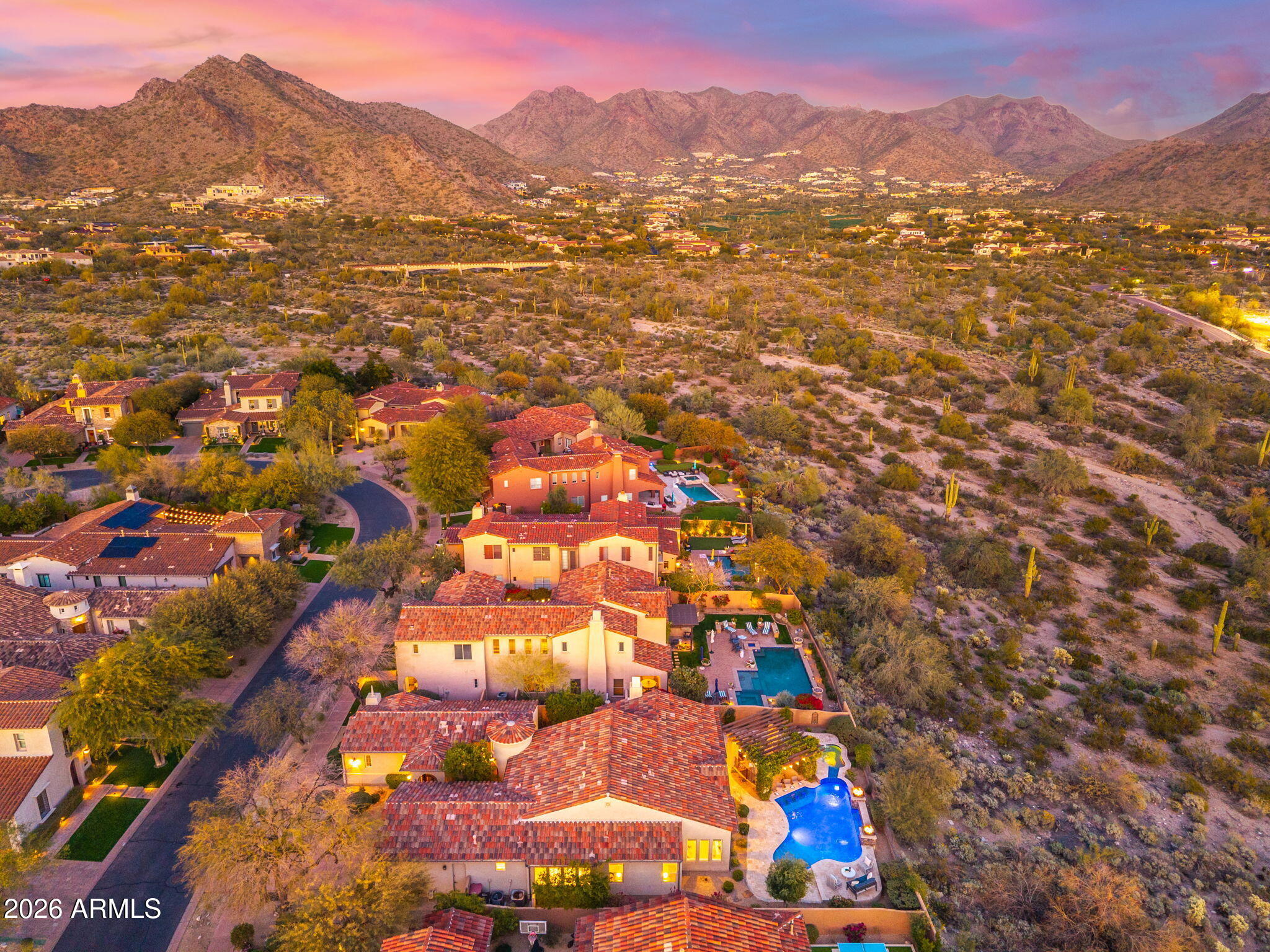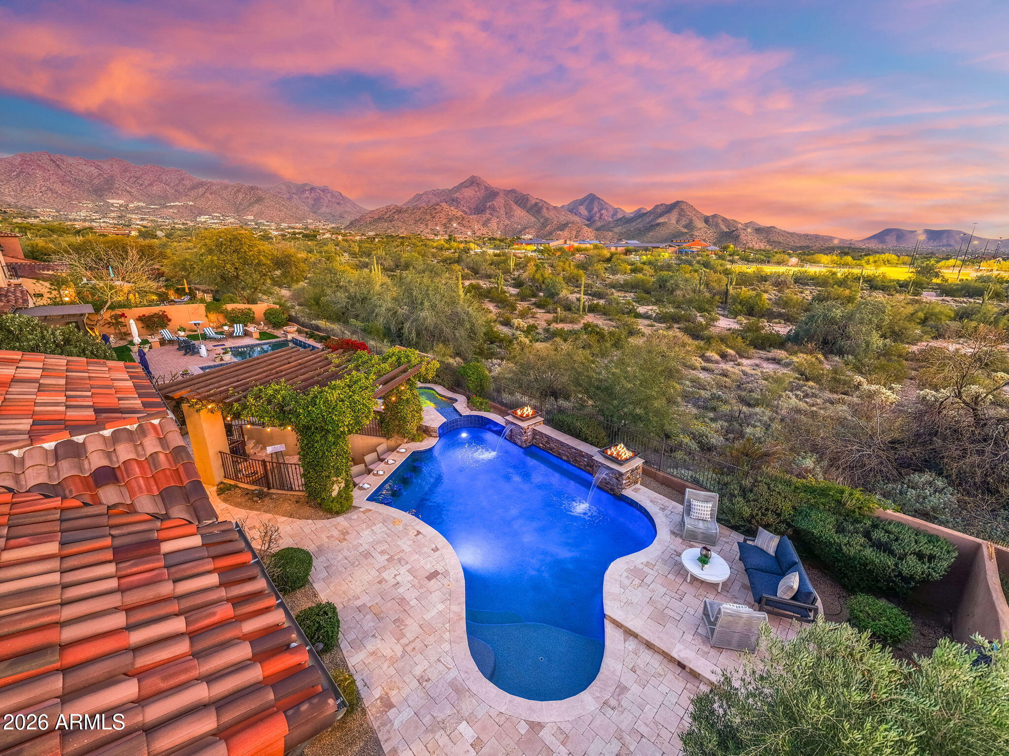 Tucked behind the gates of DC Ranch Haciendas, this residence isn't just a home, it's your unobstructed, front row seat to the McDowell Mountains and Scottsdale's city lights. Imagine unwinding in your elevated backyard resort, where every sunset paints a breathtaking 180-degree masterpiece and no neighbors interrupt your view.